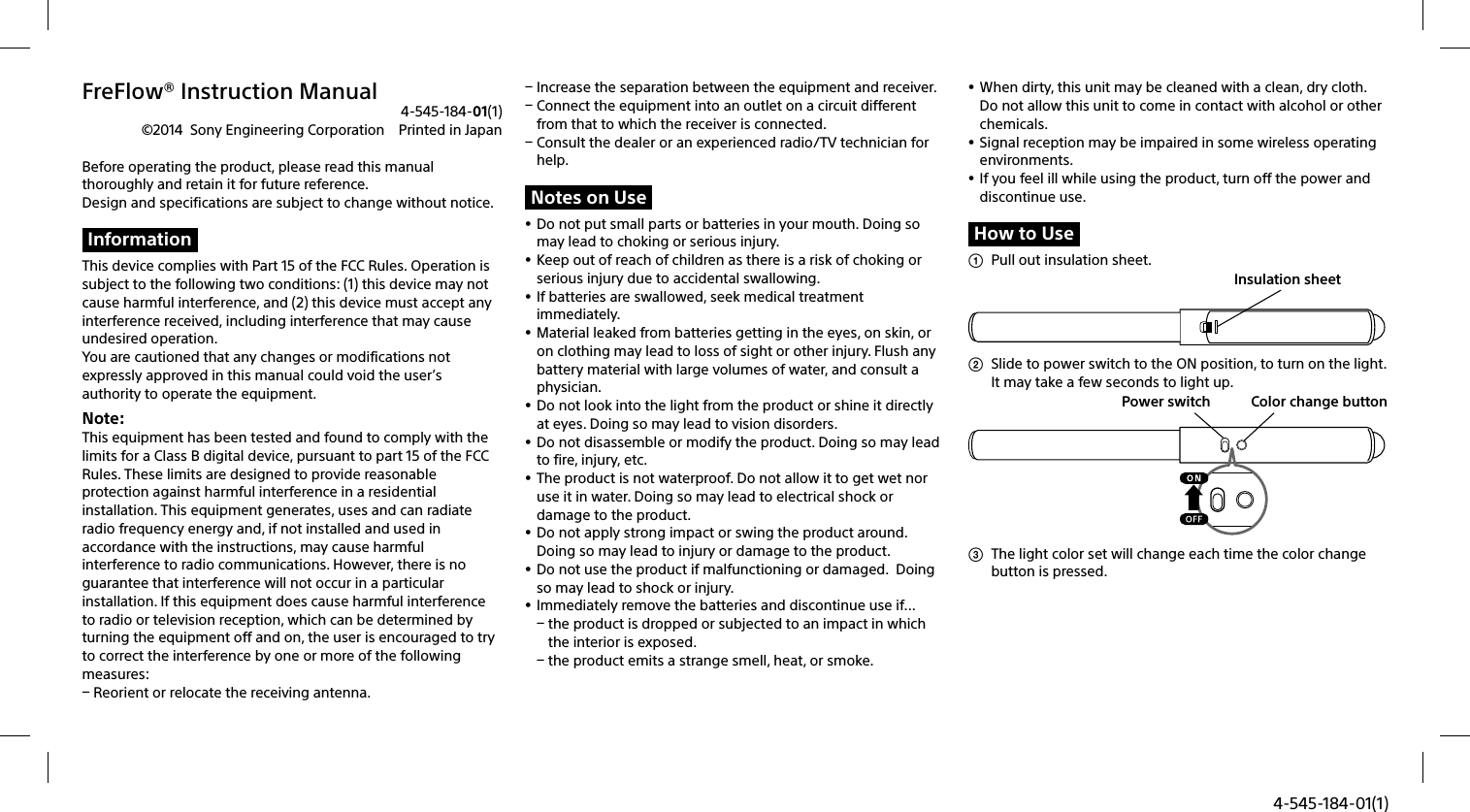 Sony Group FFS-U RF glow-stick receiver User Manual FFS R