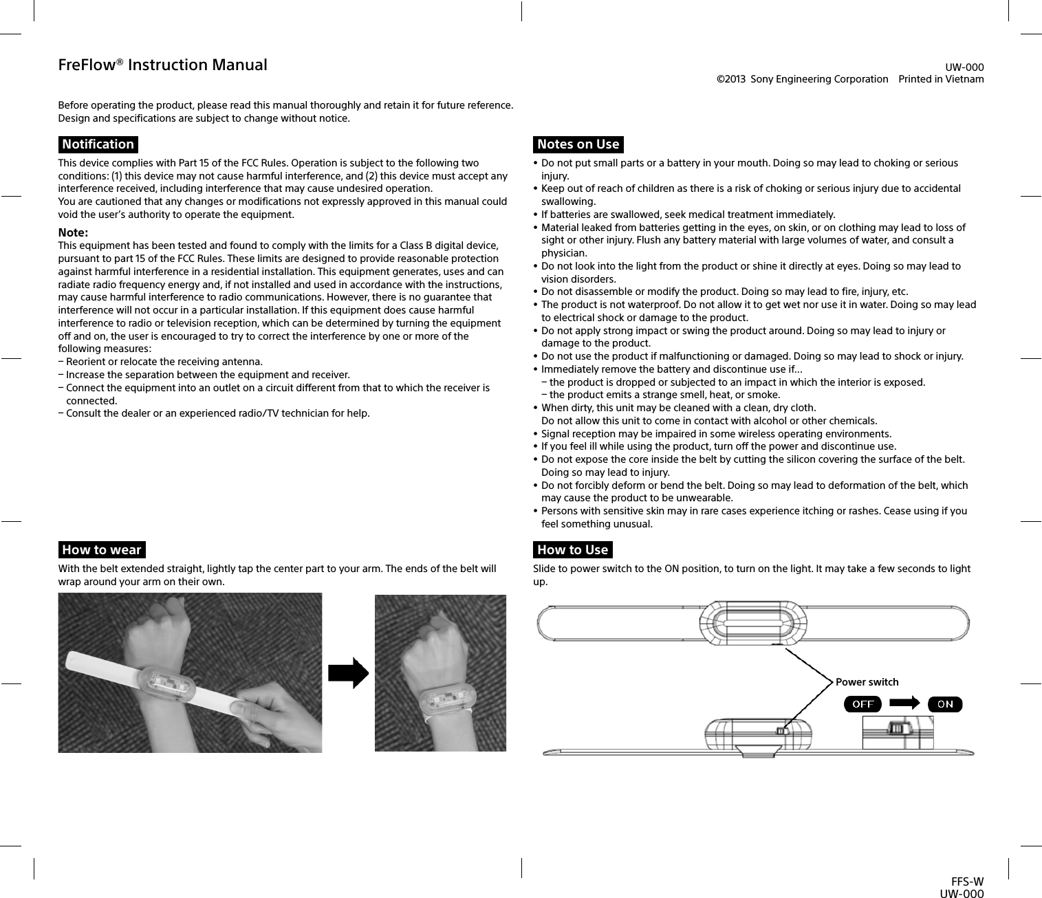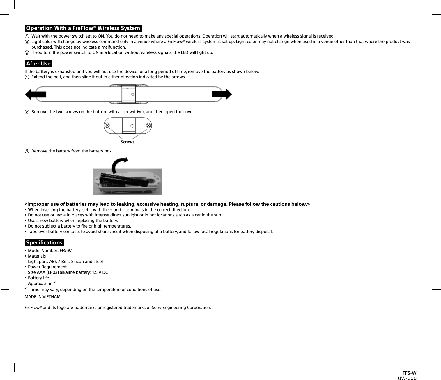 Sony Group FFS-W RF glow-wristband receiver User Manual FFS W