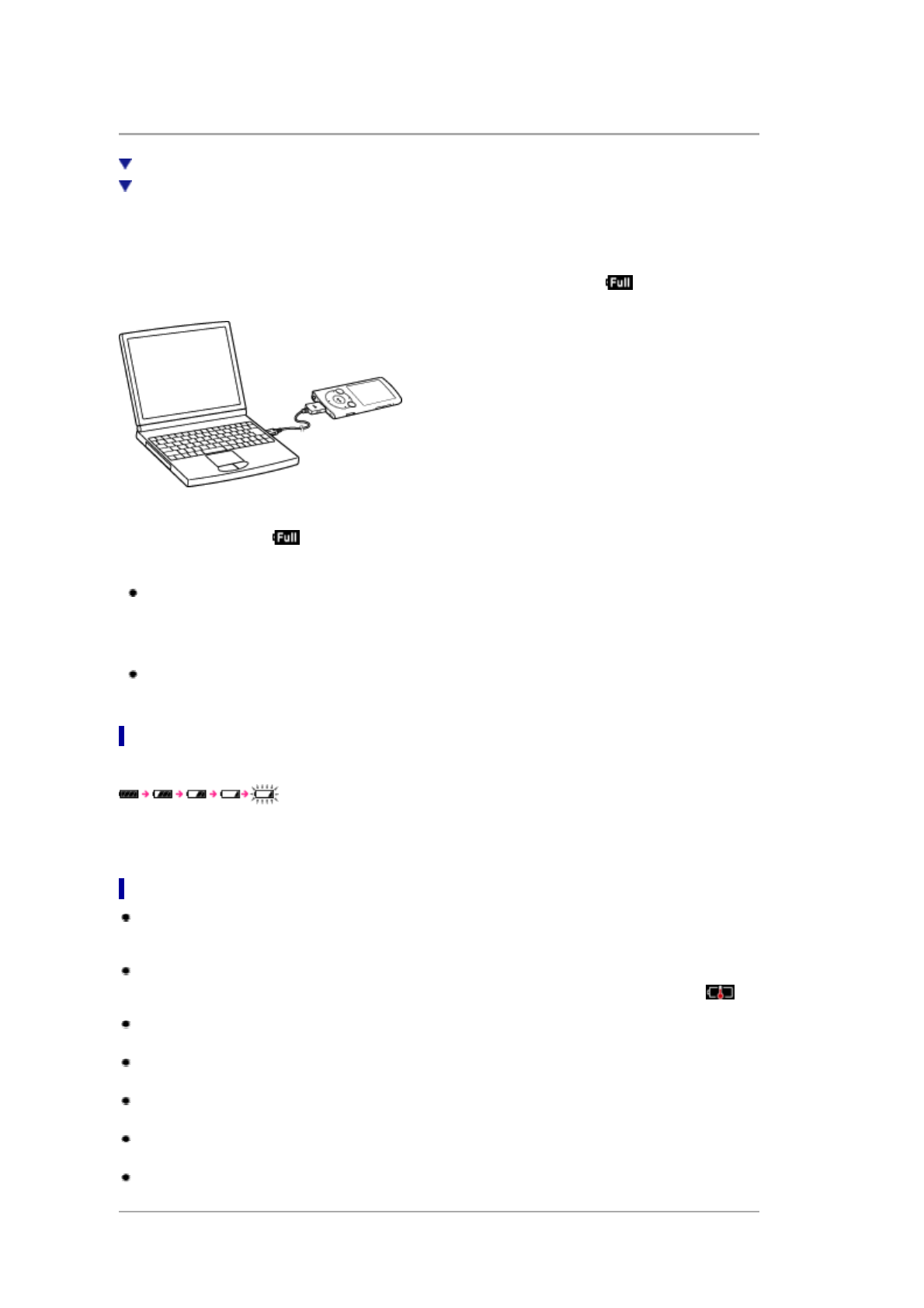 The battery of your “WALKMAN” is recharged while your “WALKMAN” is connected to a running computer