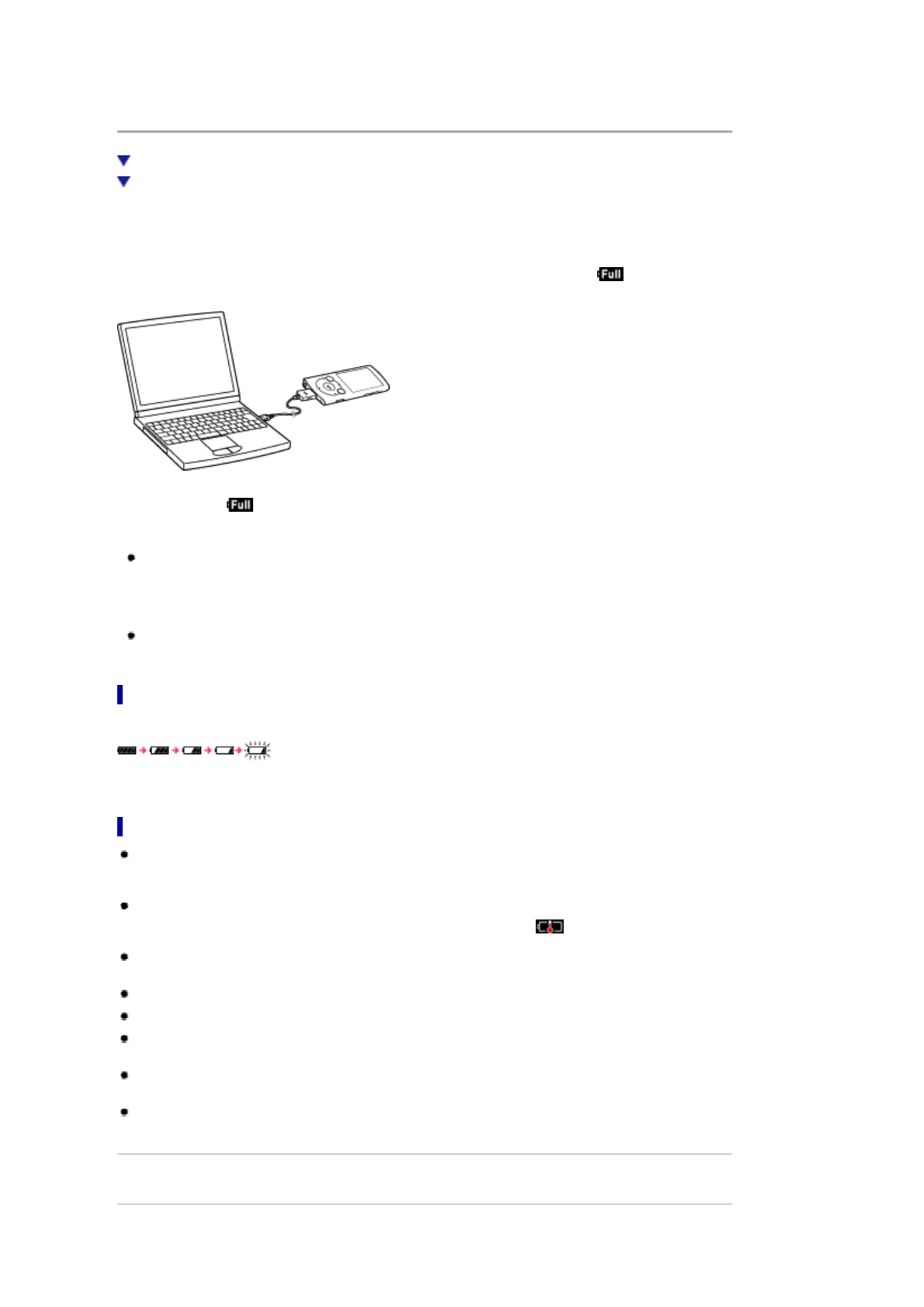 recognize it, or nothing may appear on the display. Charge your “WALKMAN” for about 5 minutes, after