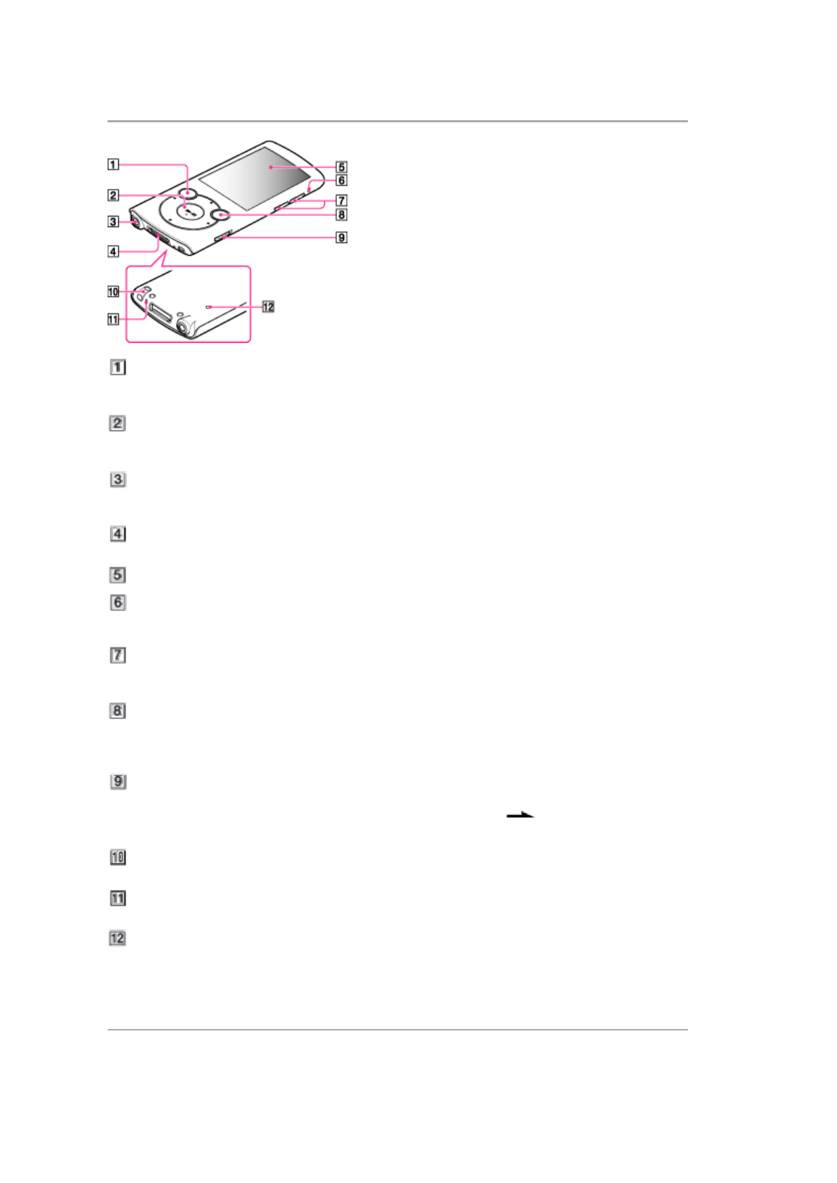 Press to start playback or navigate through the on-screen menus of your “WALKMAN.”