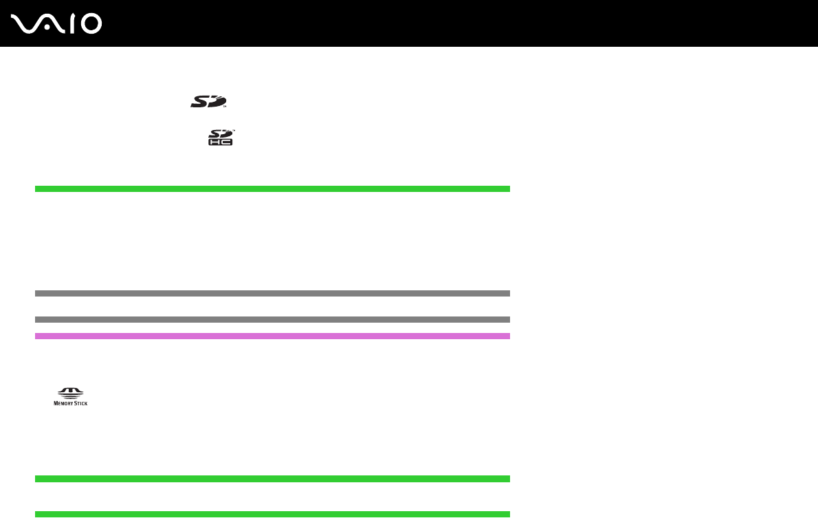 Sony, the Sony logo, VAIO, the VAIO logo, Memory Stick, Memory Stick Duo, MagicGate, OpenMG, OpenMG X, Memory