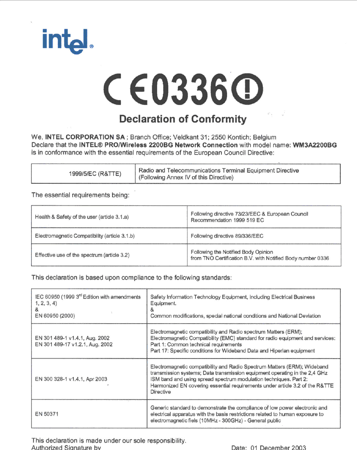 Intel(R) PRO/Wireless 2200BG Network Connection.