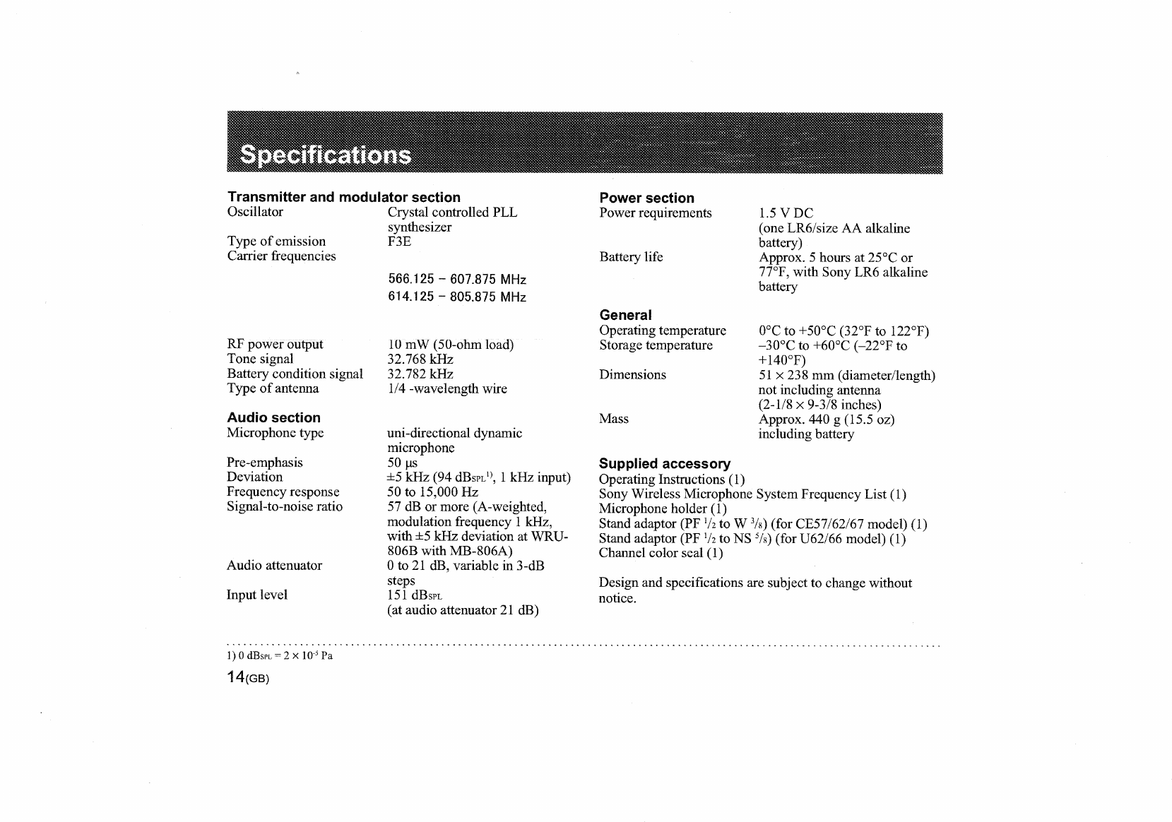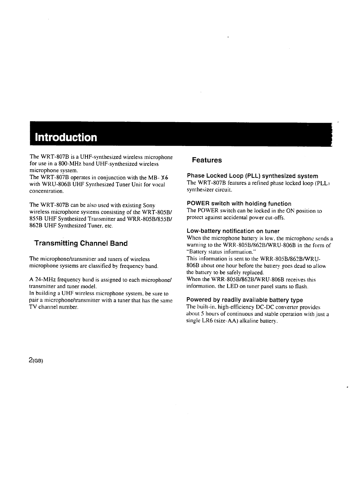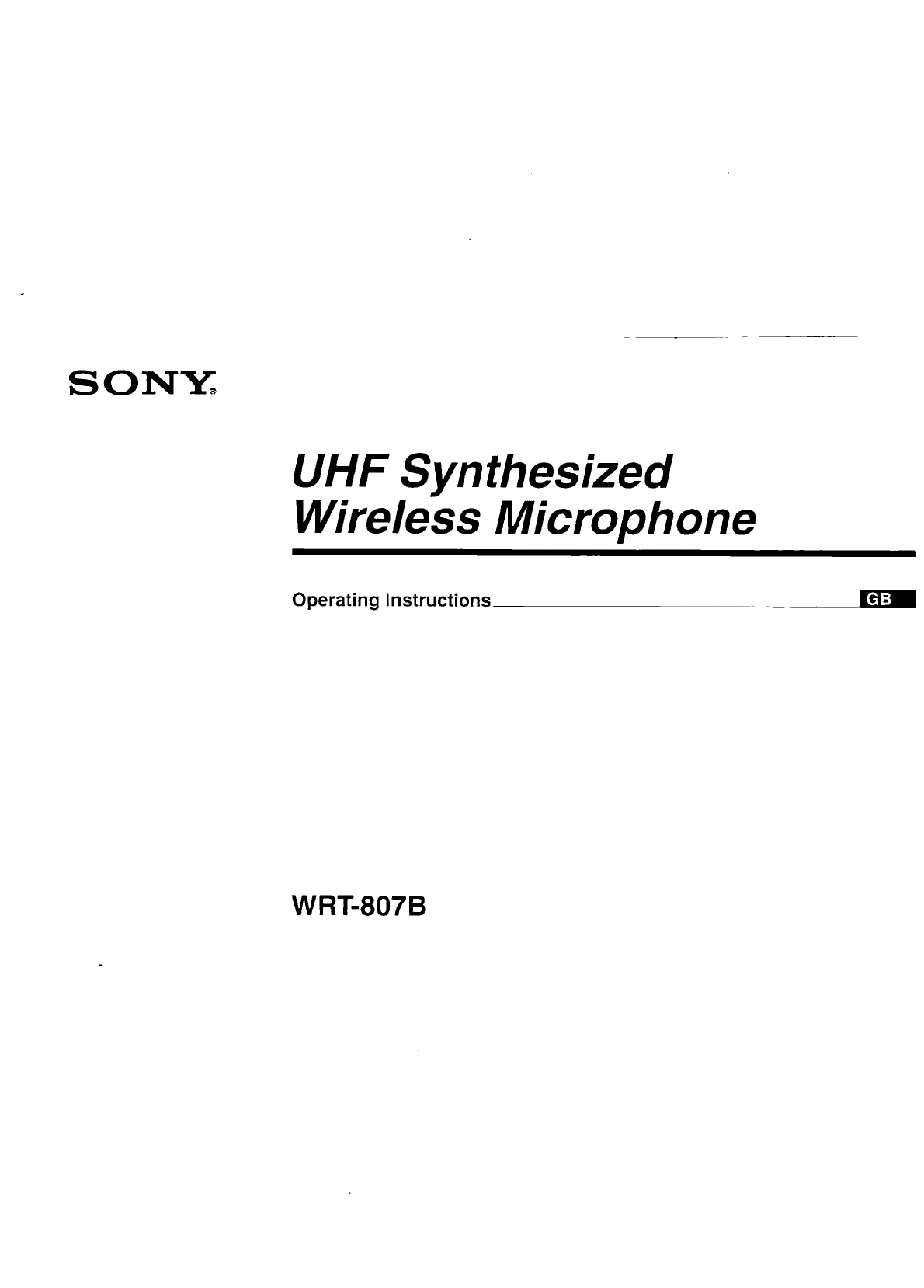 Sony Group WRT807B1 UHF Synthesized Wireless Microphone User Manual