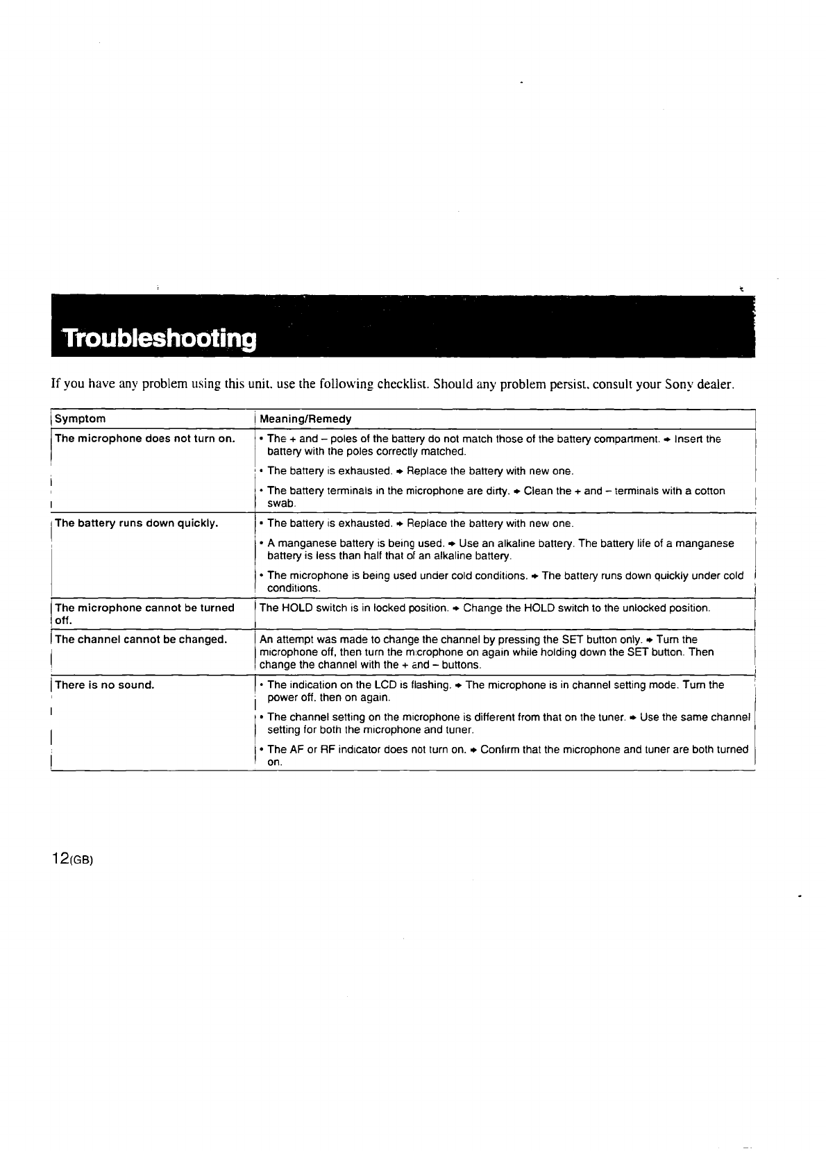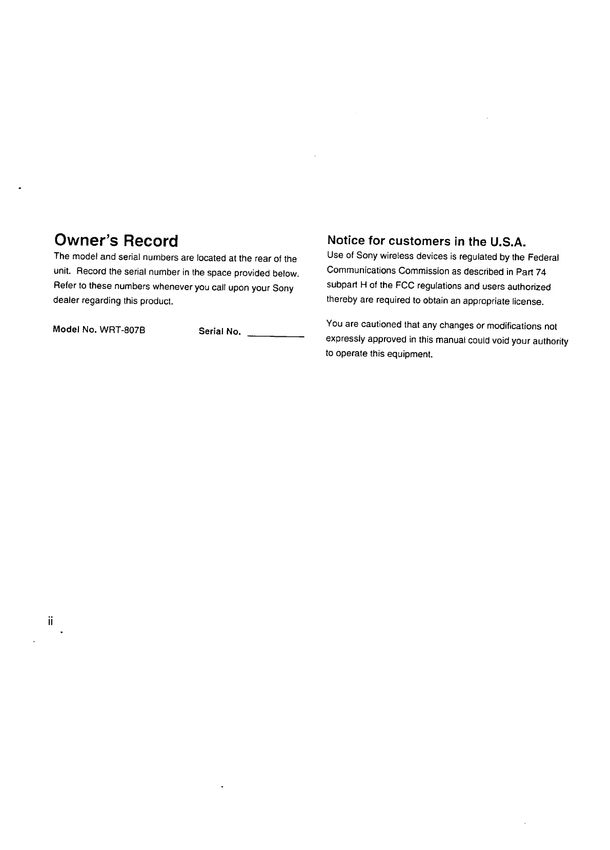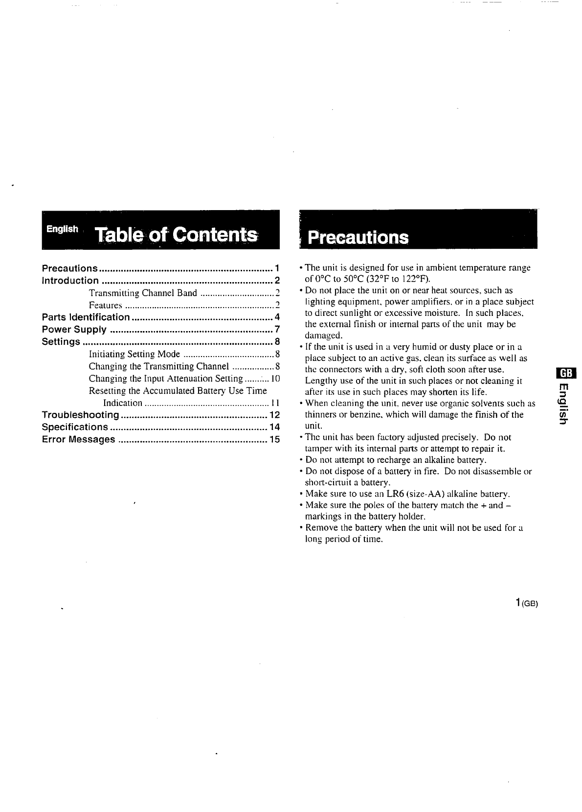 Sony Corporation UHF Synthesized Wireless Microphone Users Manual