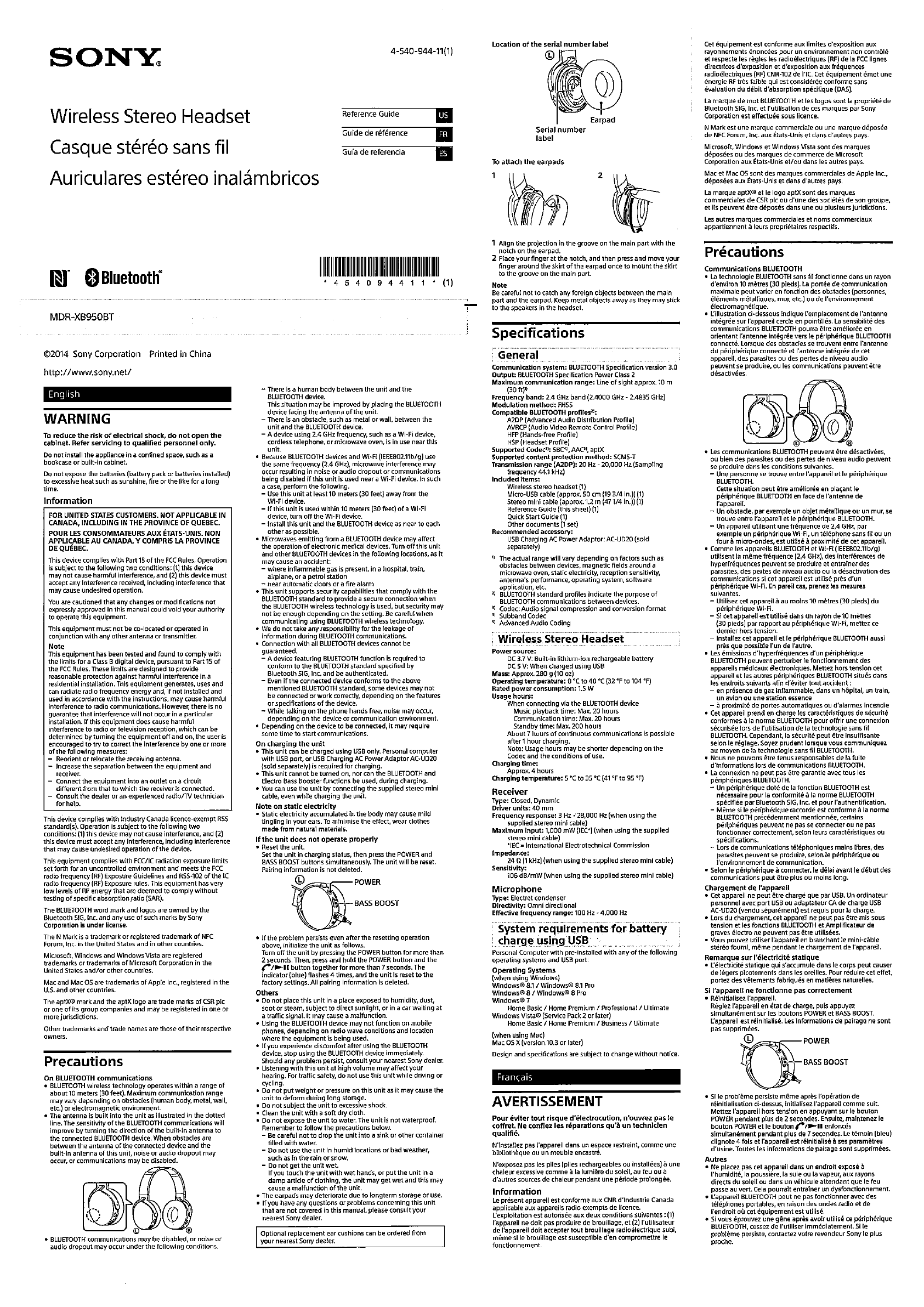 Sony Group XB950BT Wireless stereo headset User Manual Short Term Confidential 2