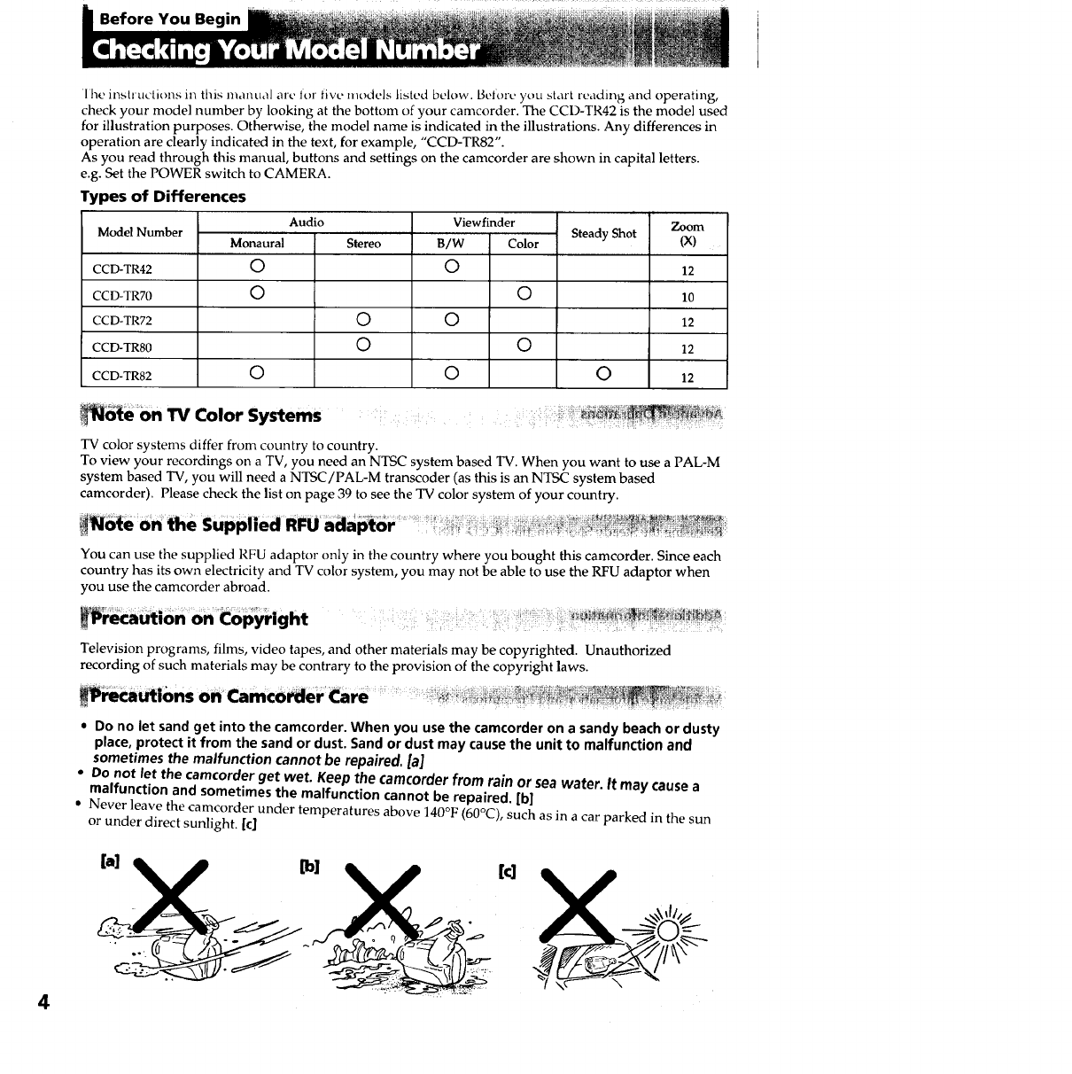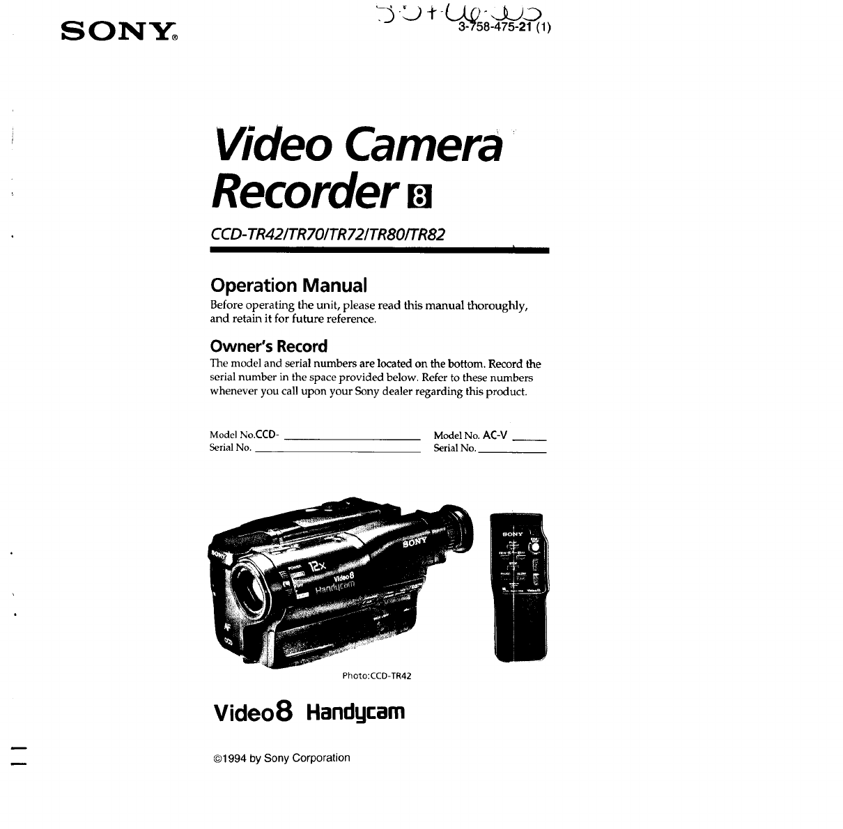 User Manual: Sony CCD-TR42 CCD-TR42 SONY VIDEO - Manuals and Guides View the owners manual for your SONY VIDEO #CCDTR42. Home:Electronics Parts:Sony Parts:Sony VIDEO Manual