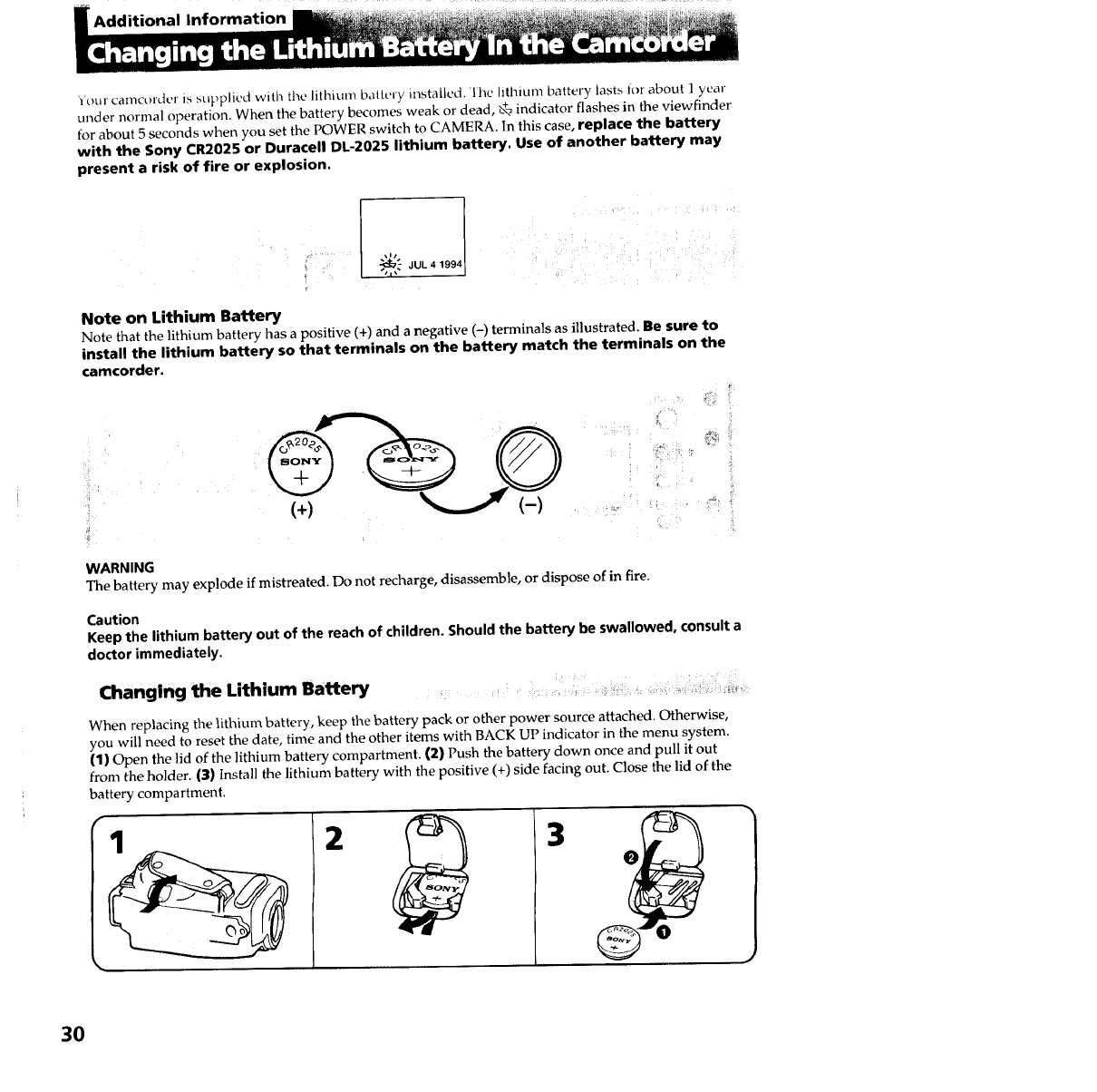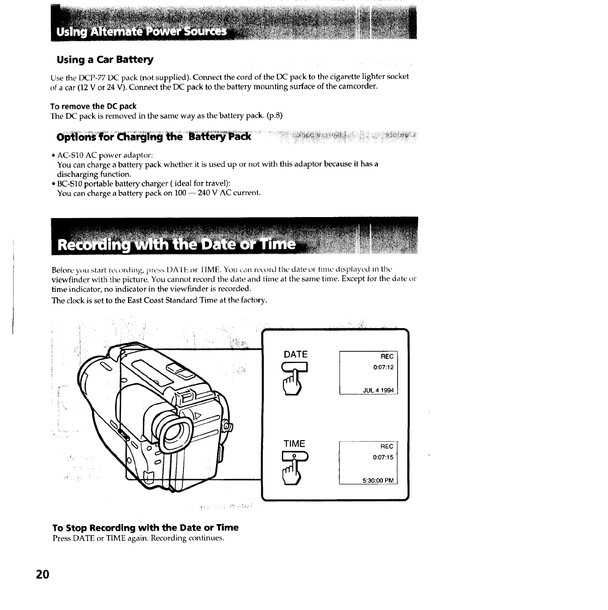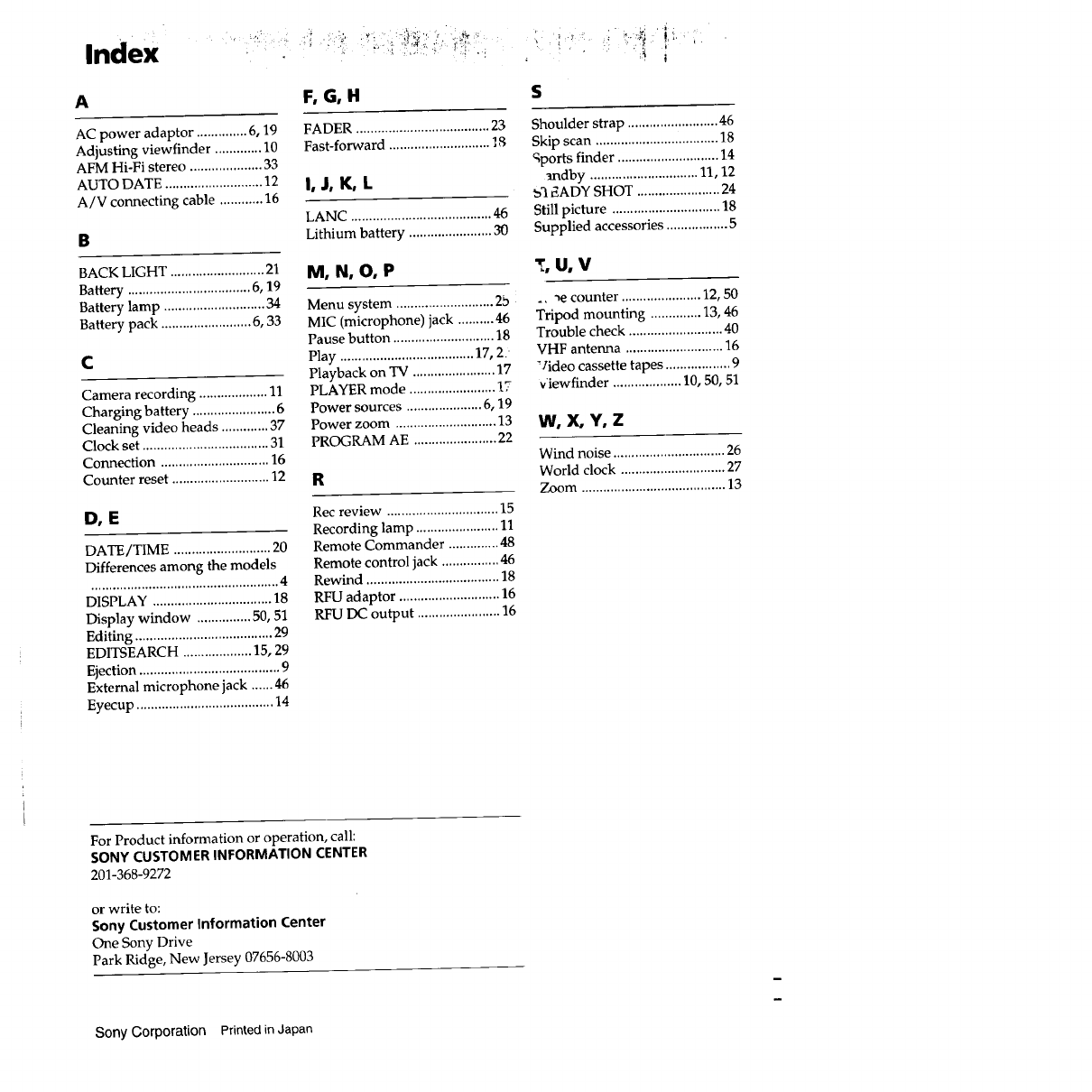 SONY 8mm Camcorder Manual 97090120 SONY 8mm Camcorder Owner's Manual, SONY 8mm Camcorder installation guides