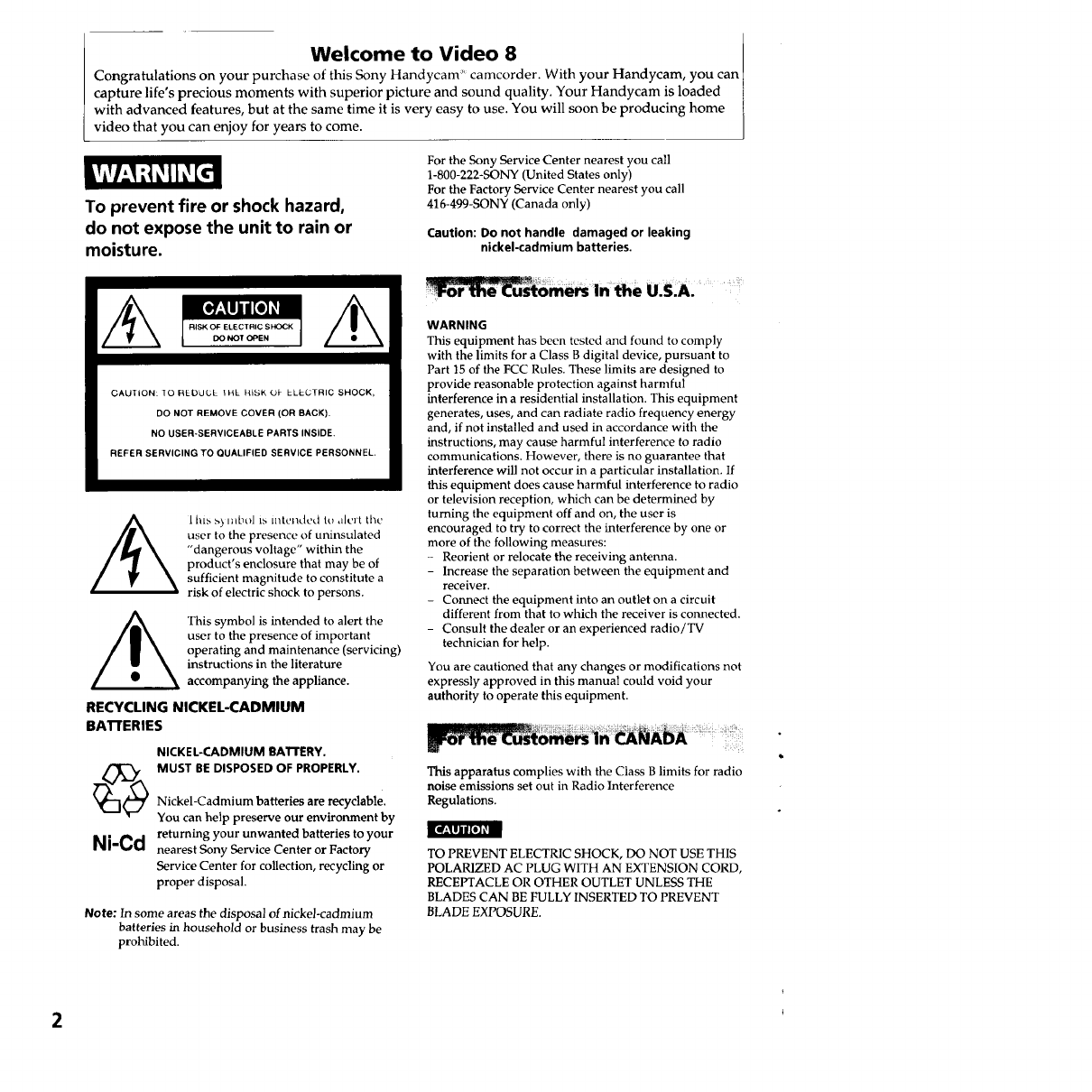 Congratulations on your purchase of this Sony Handycam" camcorder. With your Handycam, you can