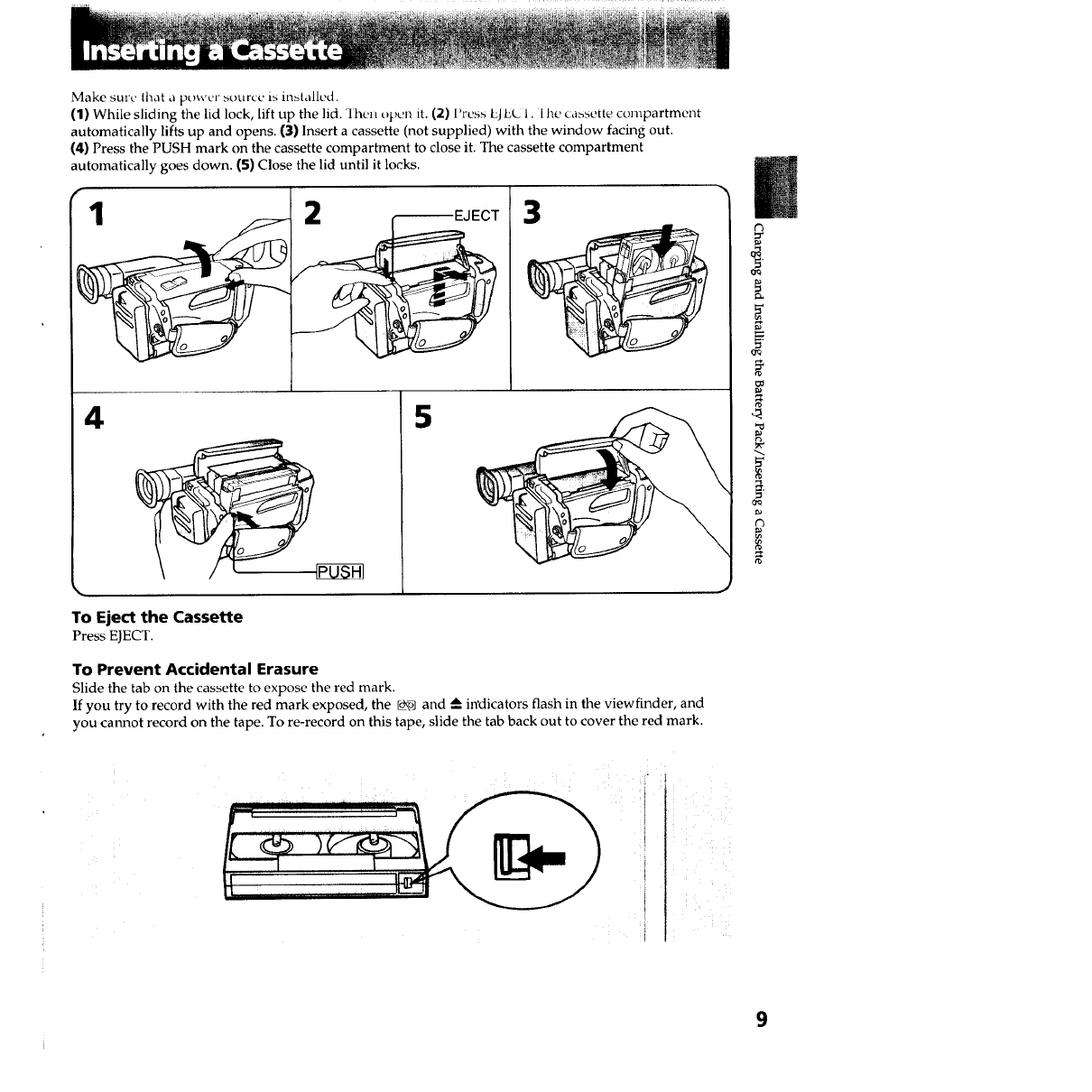 [] The tab on the tape is out (red) (p.9).