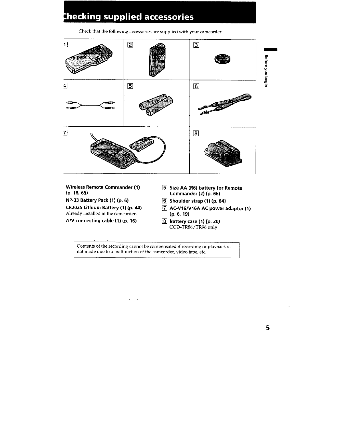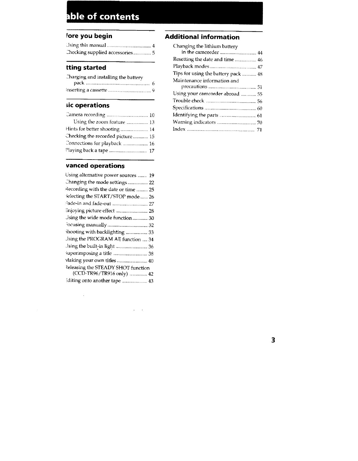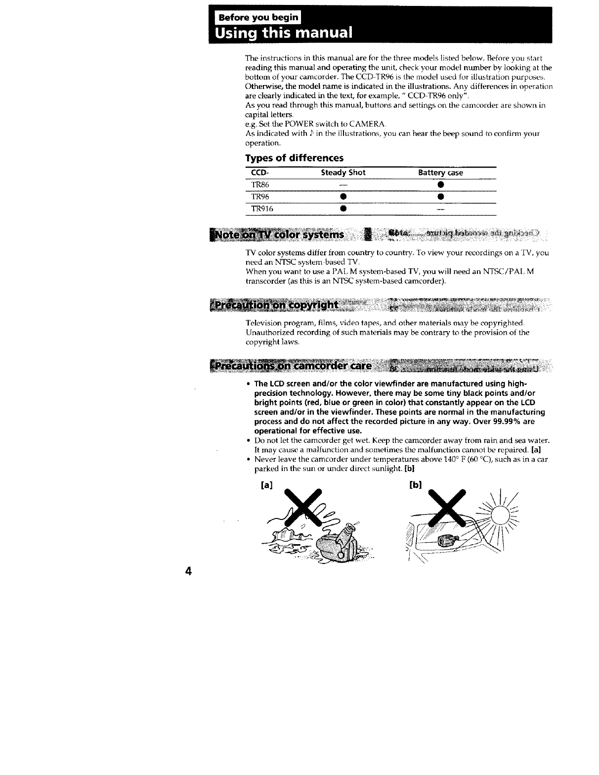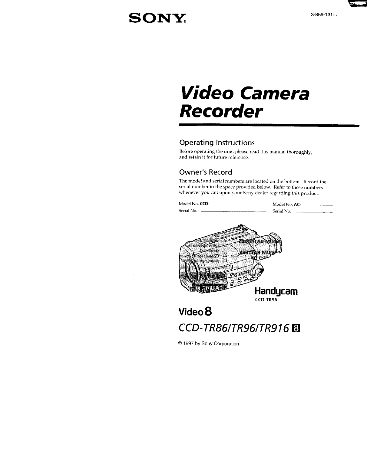 User Manual: Sony CCD-TR86 CCD-TR86 SONY 8mm - Manuals and Guides View the owners manual for your SONY 8mm #CCDTR86. Home:Electronics Parts:Sony Parts:Sony 8mm Manual