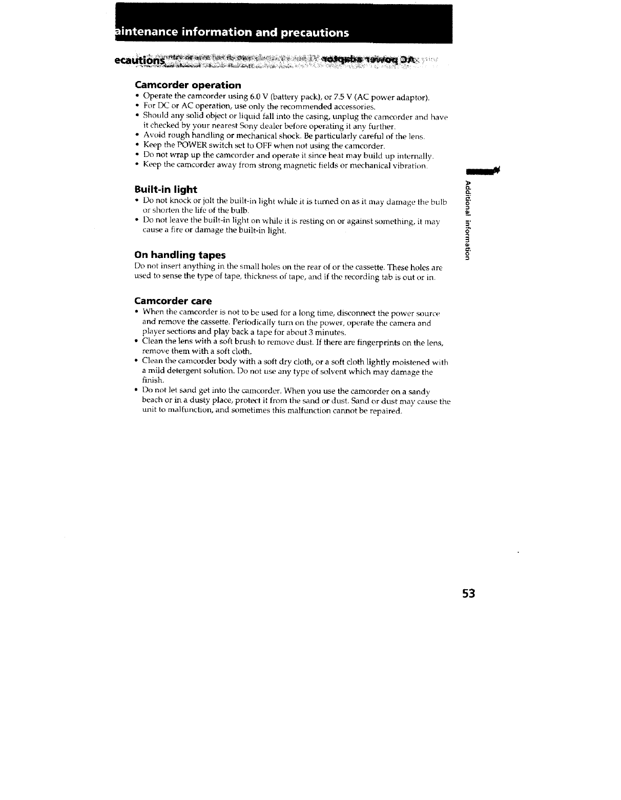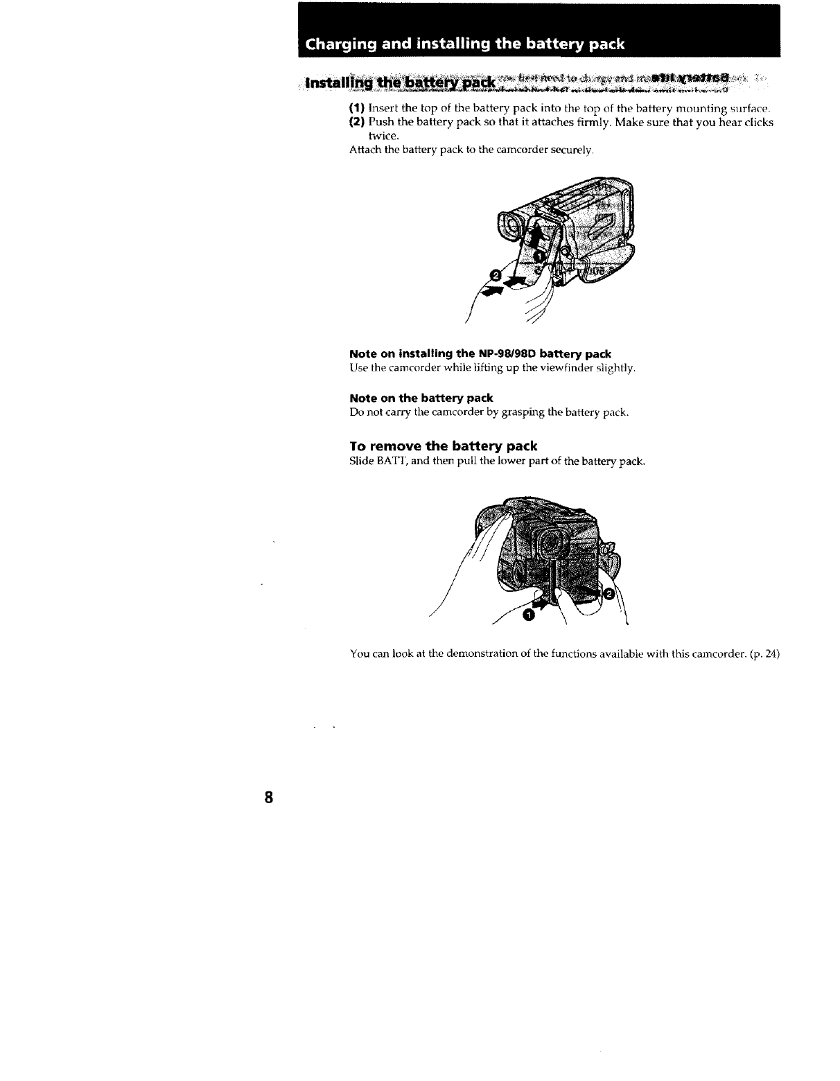SONY 8mm Camcorder Manual L0603390 SONY 8mm Camcorder Owner's Manual, SONY 8mm Camcorder installation guides