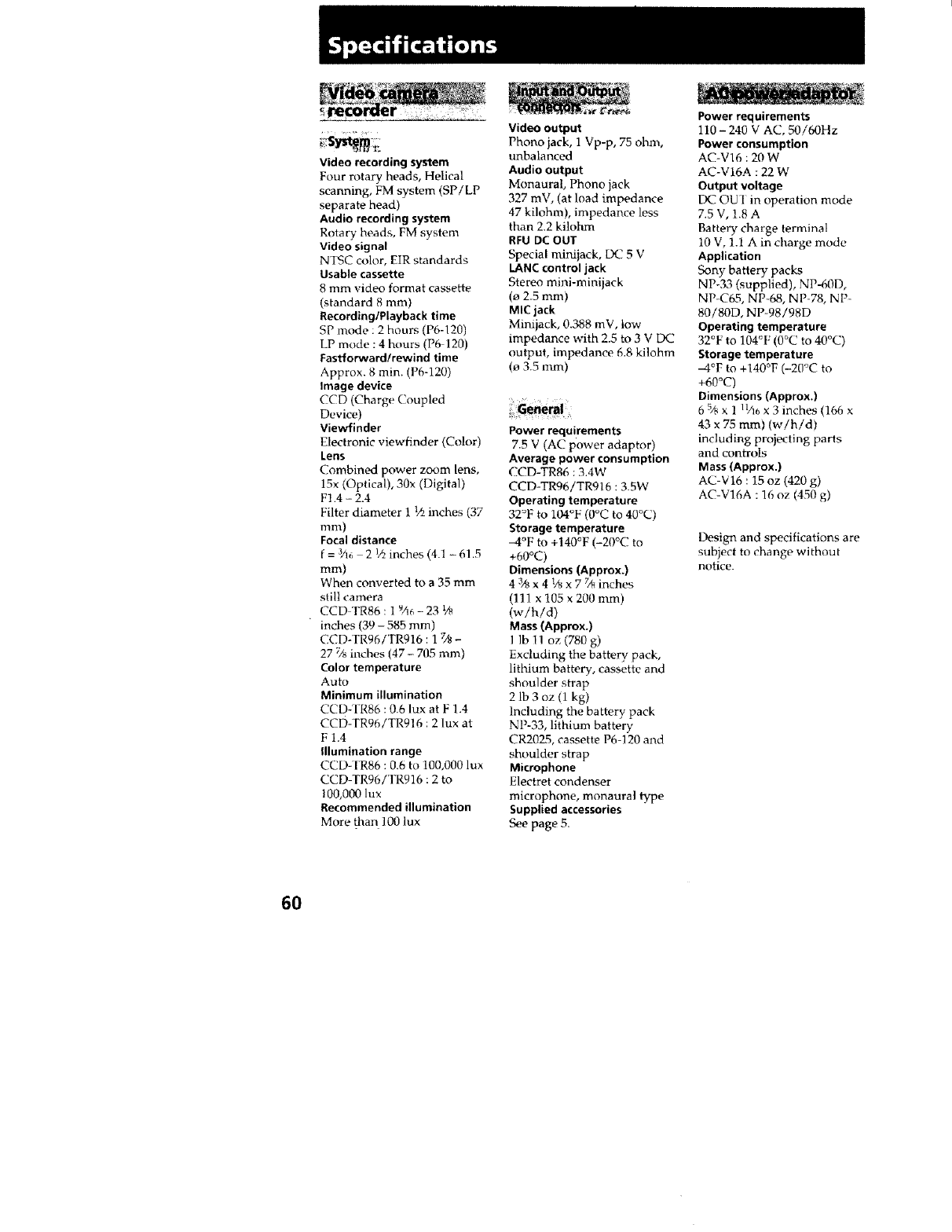 Sony CCD TR86 User Manual 8mm Manuals And Guides L0603390