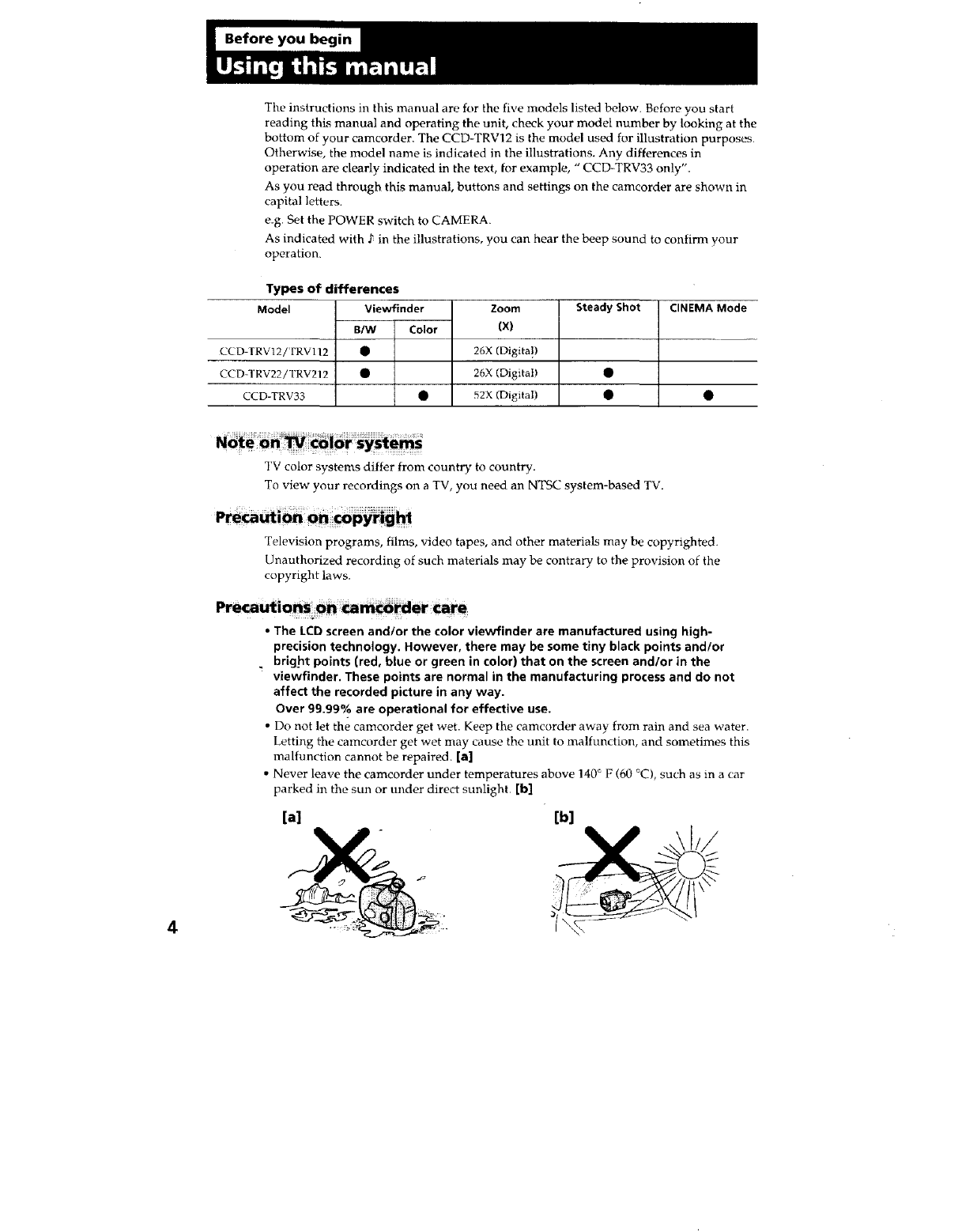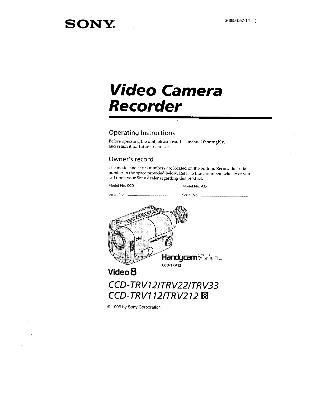 User Manual: Sony CCD-TRV12 CCD-TRV12 SONY VIDEO CAMERA RECORDER - Manuals and Guides View the owners manual for your SONY VIDEO CAMERA RECORDER #CCDTRV12. Home:Electronics Parts:Sony Parts:Sony VIDEO CAMERA RECORDER Manual