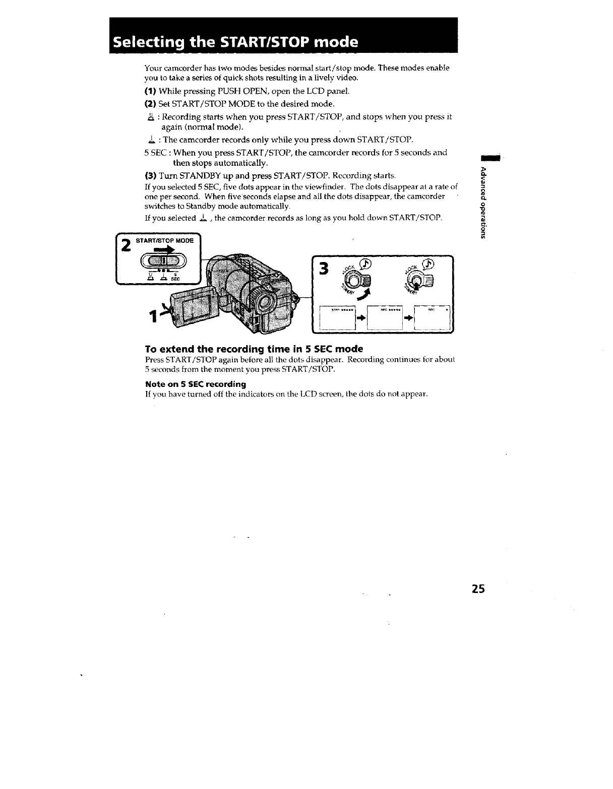 5 sec, recording .................. 25