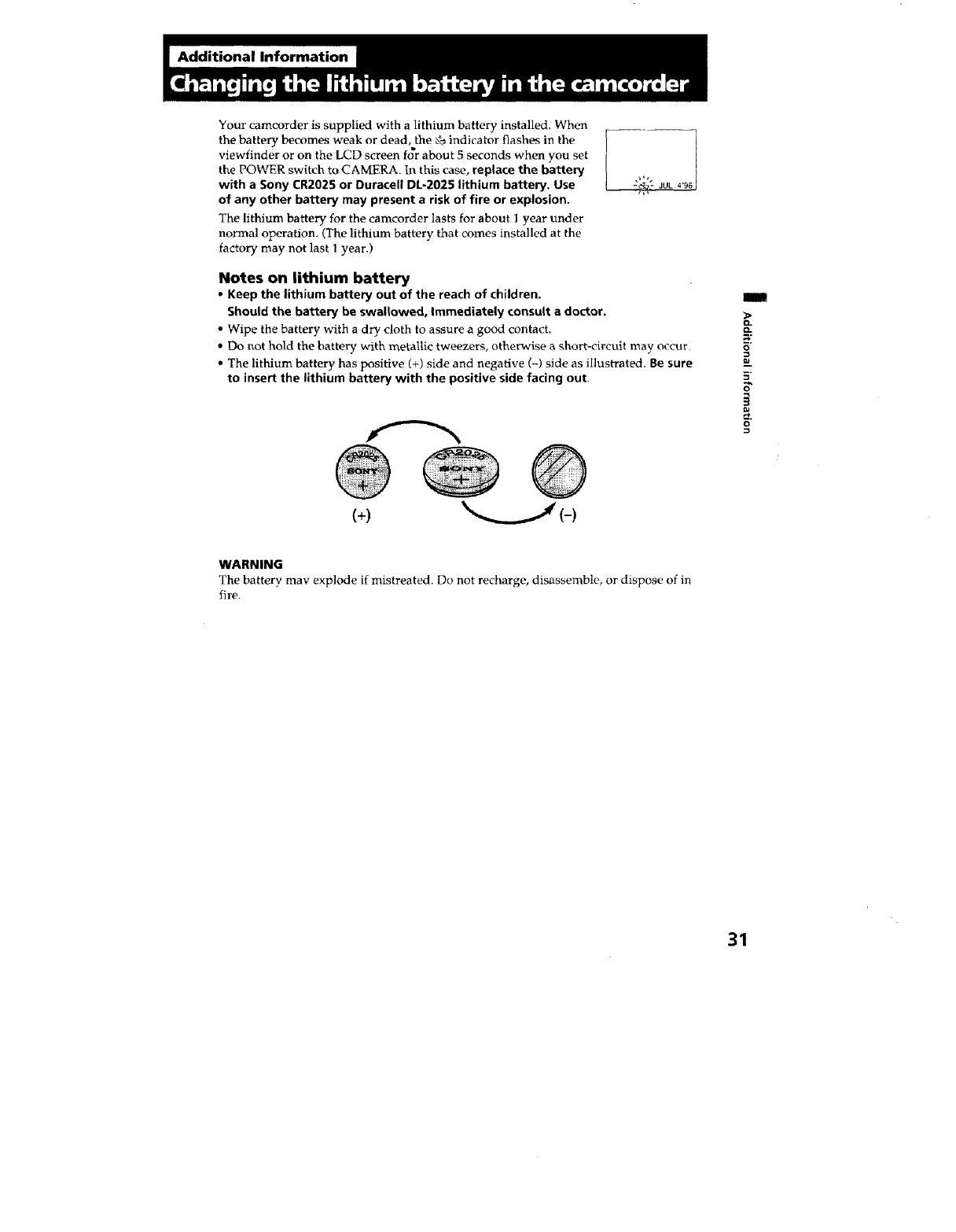 Lithium battery .................. 31