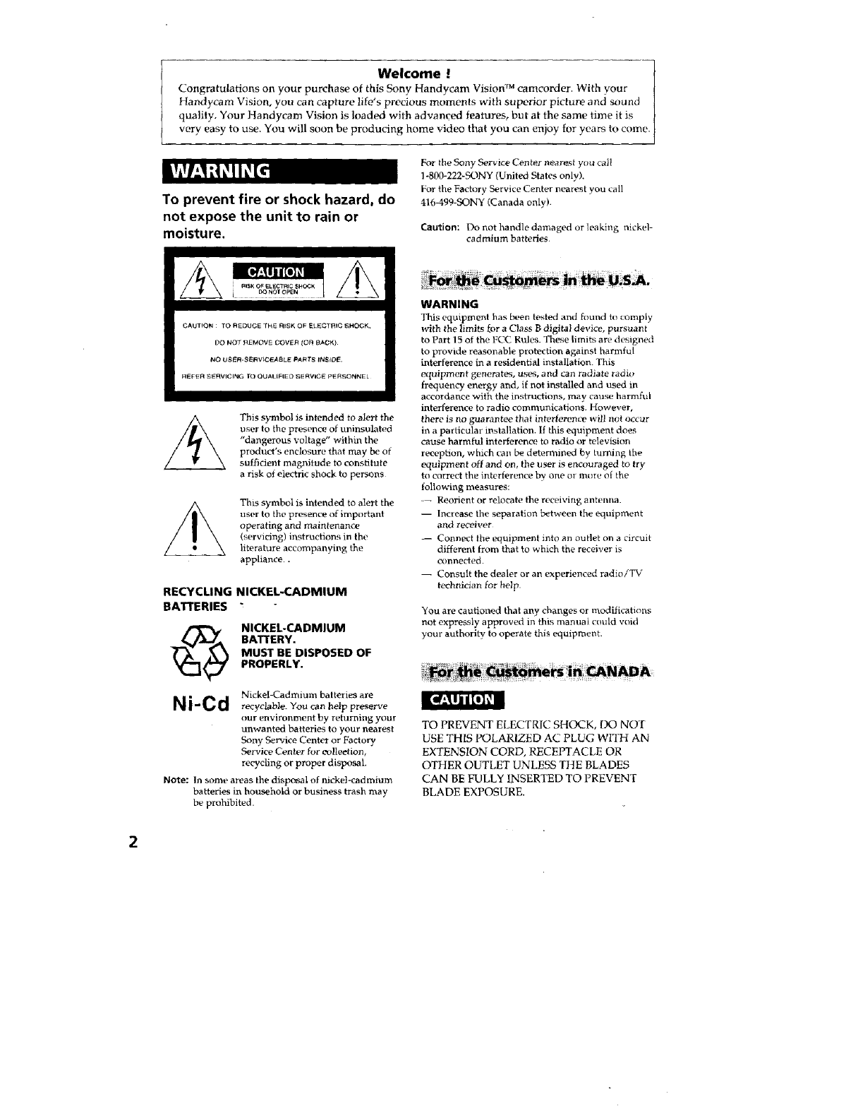 Congratulations on your purchase of this Sony Handycam Vision TM camcorder. With your