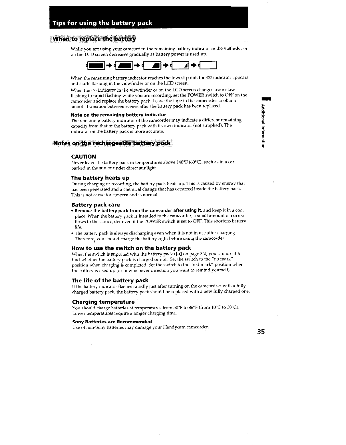 [] Remaining battery indicator (p, 35)