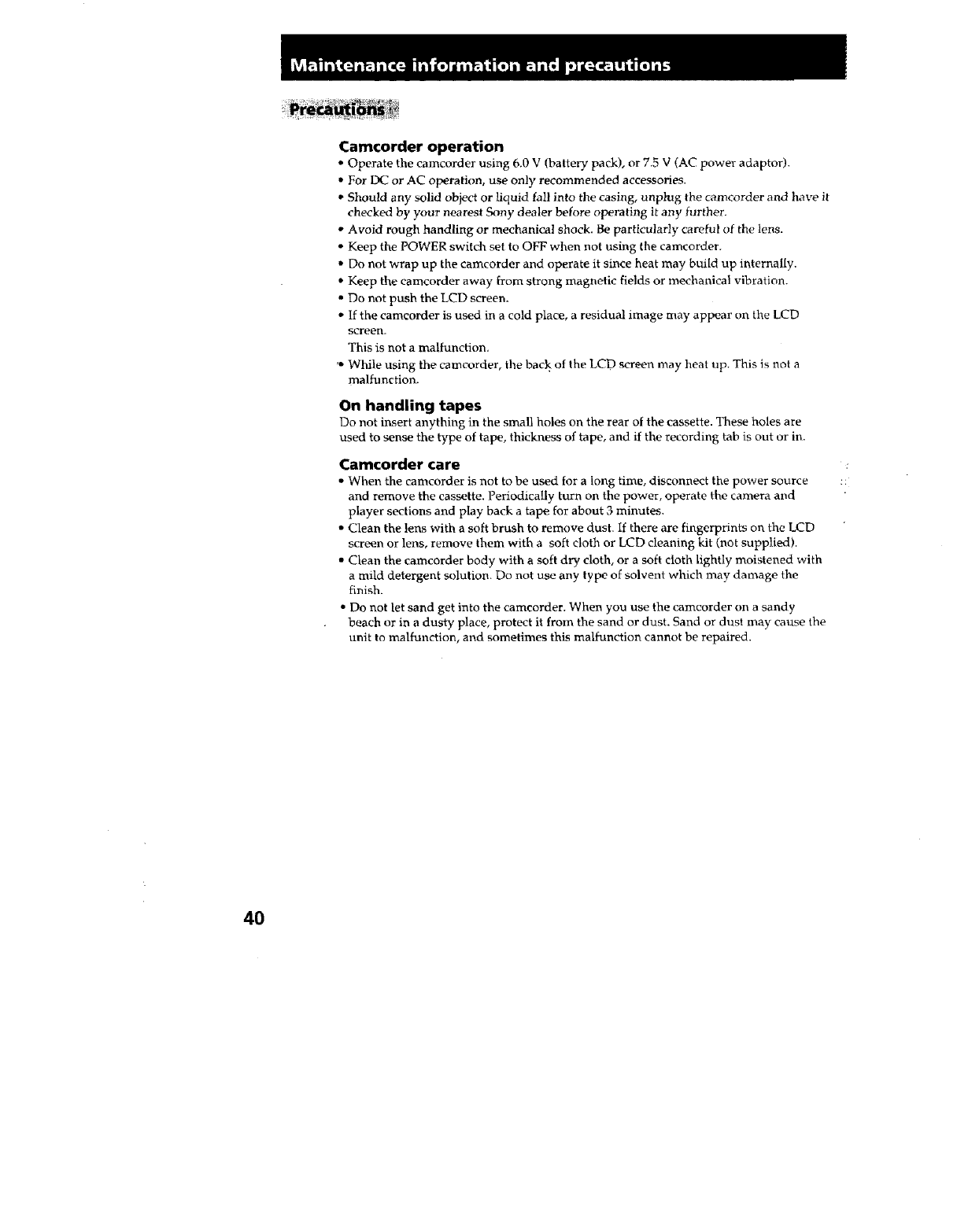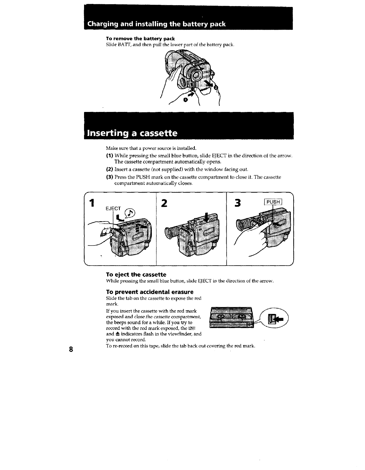 SONY 8mm Camcorder Manual L0606332 SONY 8mm Camcorder Owner's Manual, SONY 8mm Camcorder installation guides