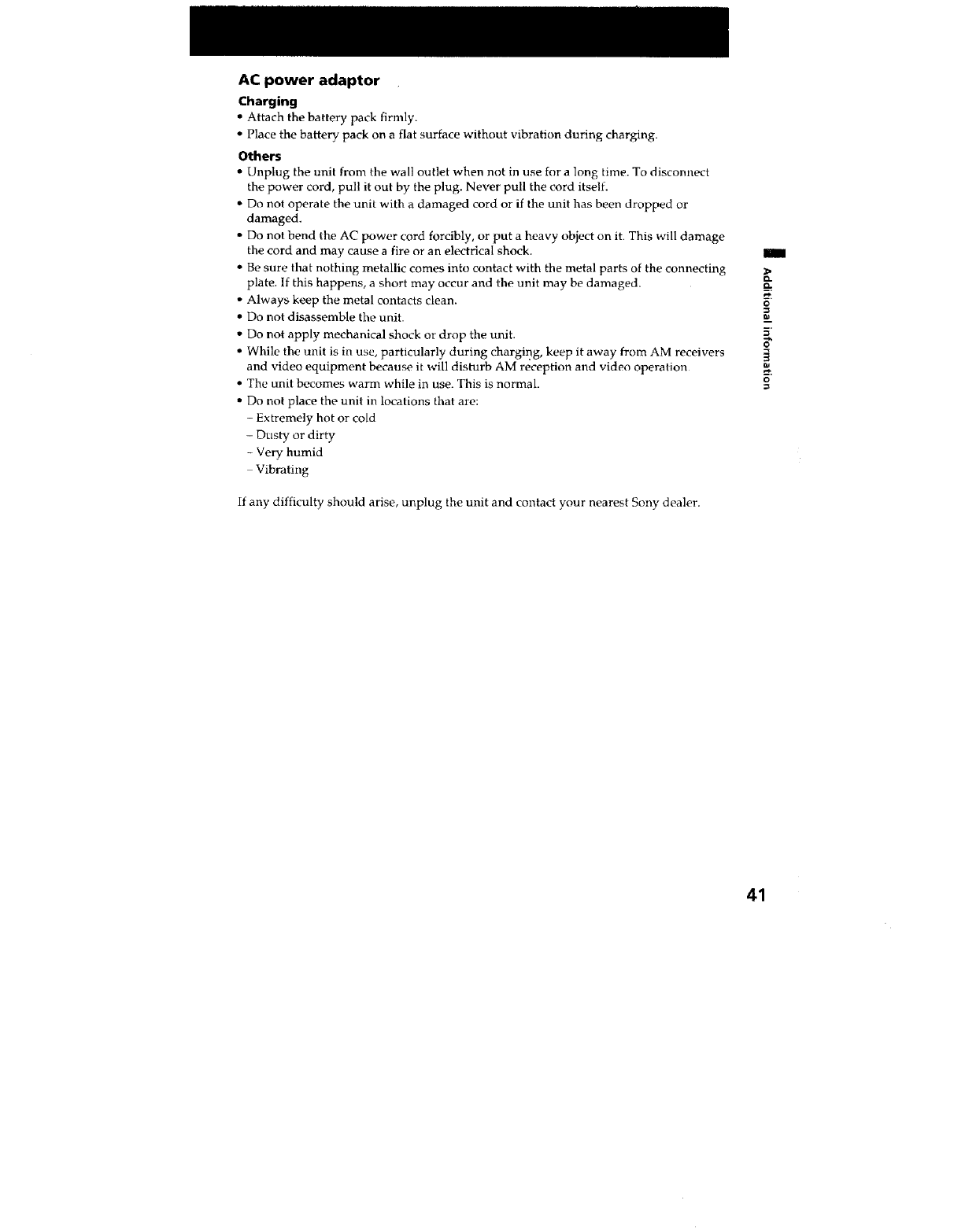 your Sony dealer or local authorized