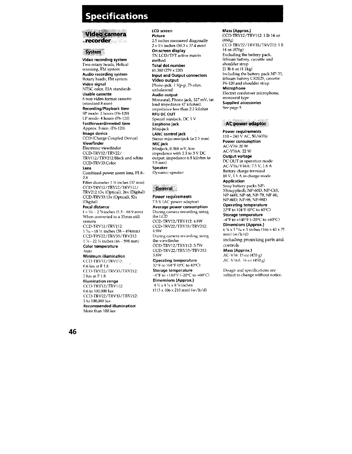 Sony CCD TRV12 User Manual VIDEO CAMERA RECORDER Manuals And Guides L0606332