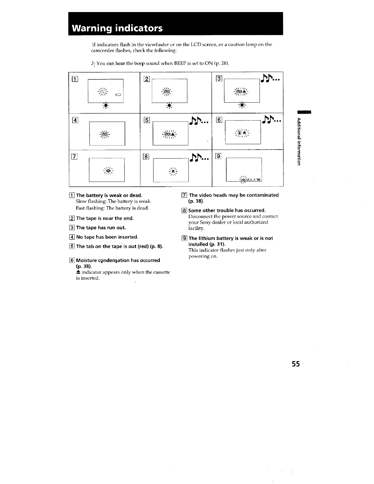 If indicators flash in the viewfinder or on the LCD screen, or a caution lamp on the