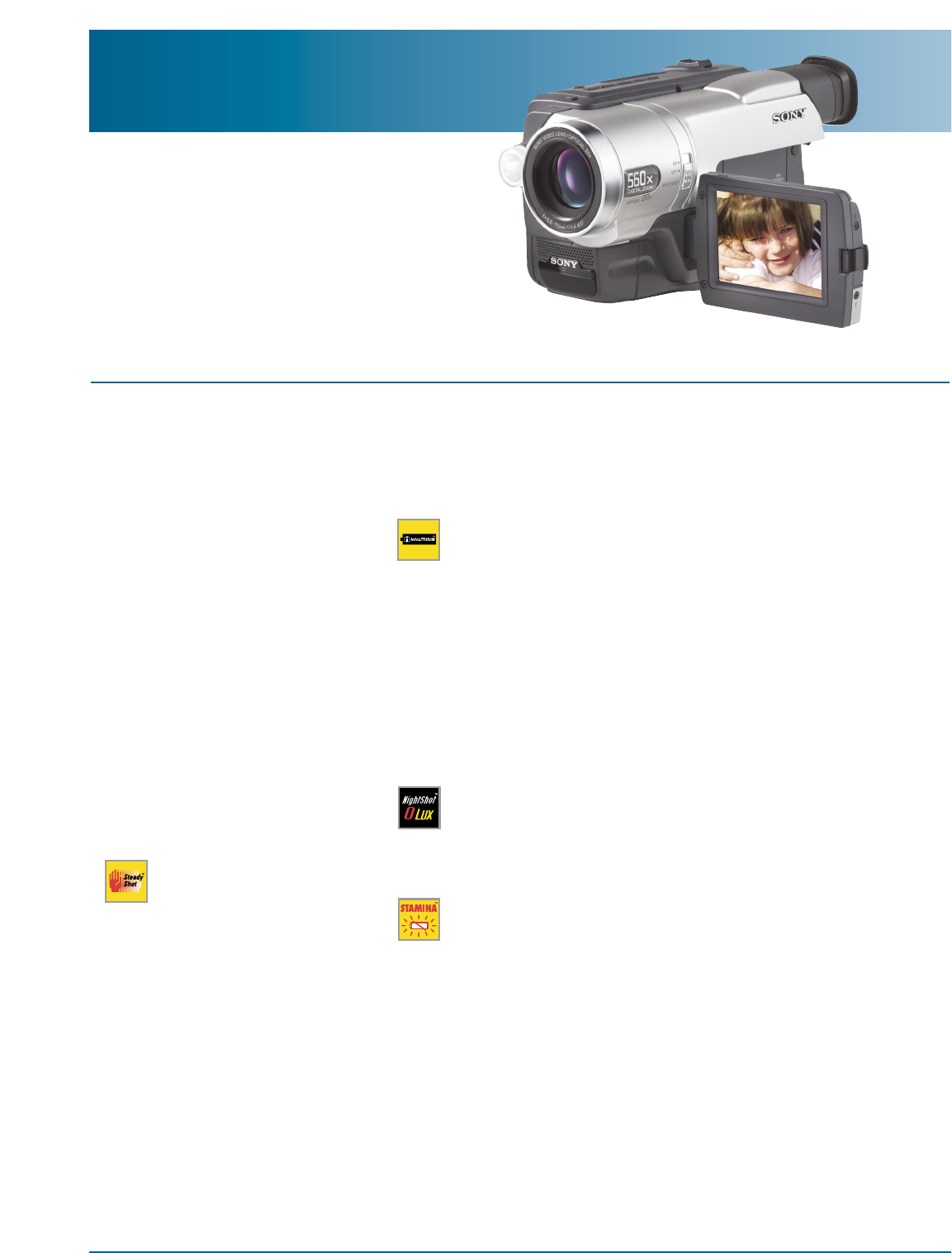 Sony, AccuPower, Handycam, Hi8, InfoLithium, Memory Stick, NightShot, Stamina, SteadyShot,