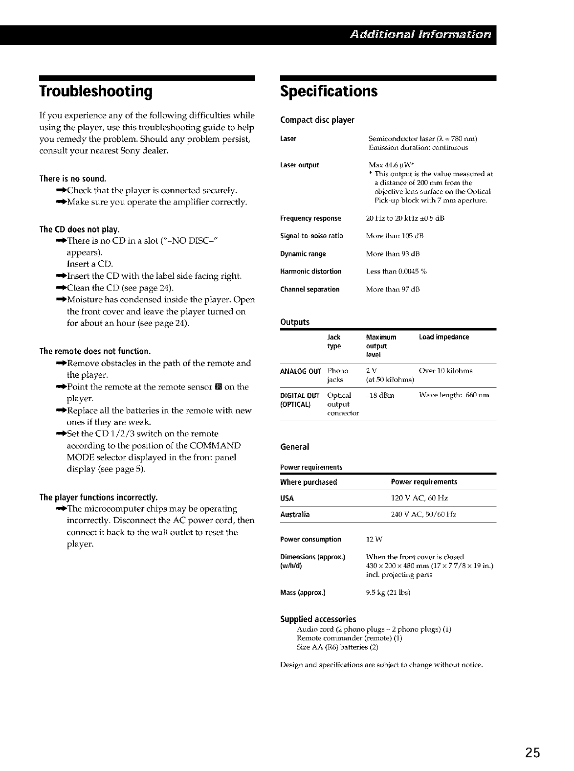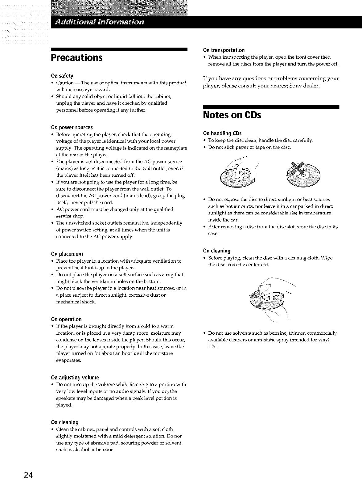 SONY Compact Disc Manual L0307316 SONY Compact Disc Owner's Manual, SONY Compact Disc installation guides