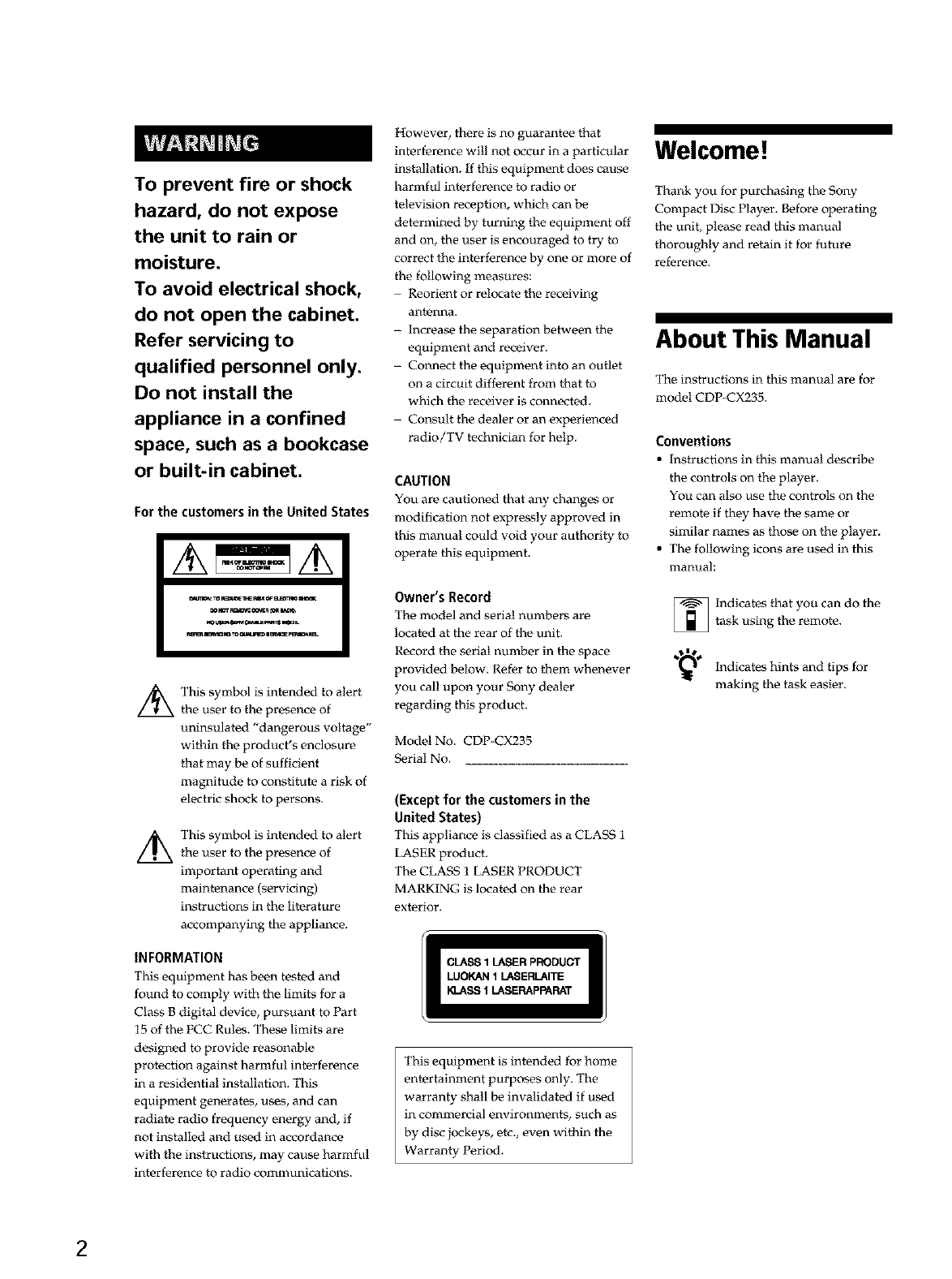User Manual: Sony CDP-CX235 CDP-CX235 SONY CD CHANGER - Manuals and Guides View the owners manual for your SONY CD CHANGER #CDPCX235. Home:Electronics Parts:Sony Parts:Sony CD CHANGER Manual
