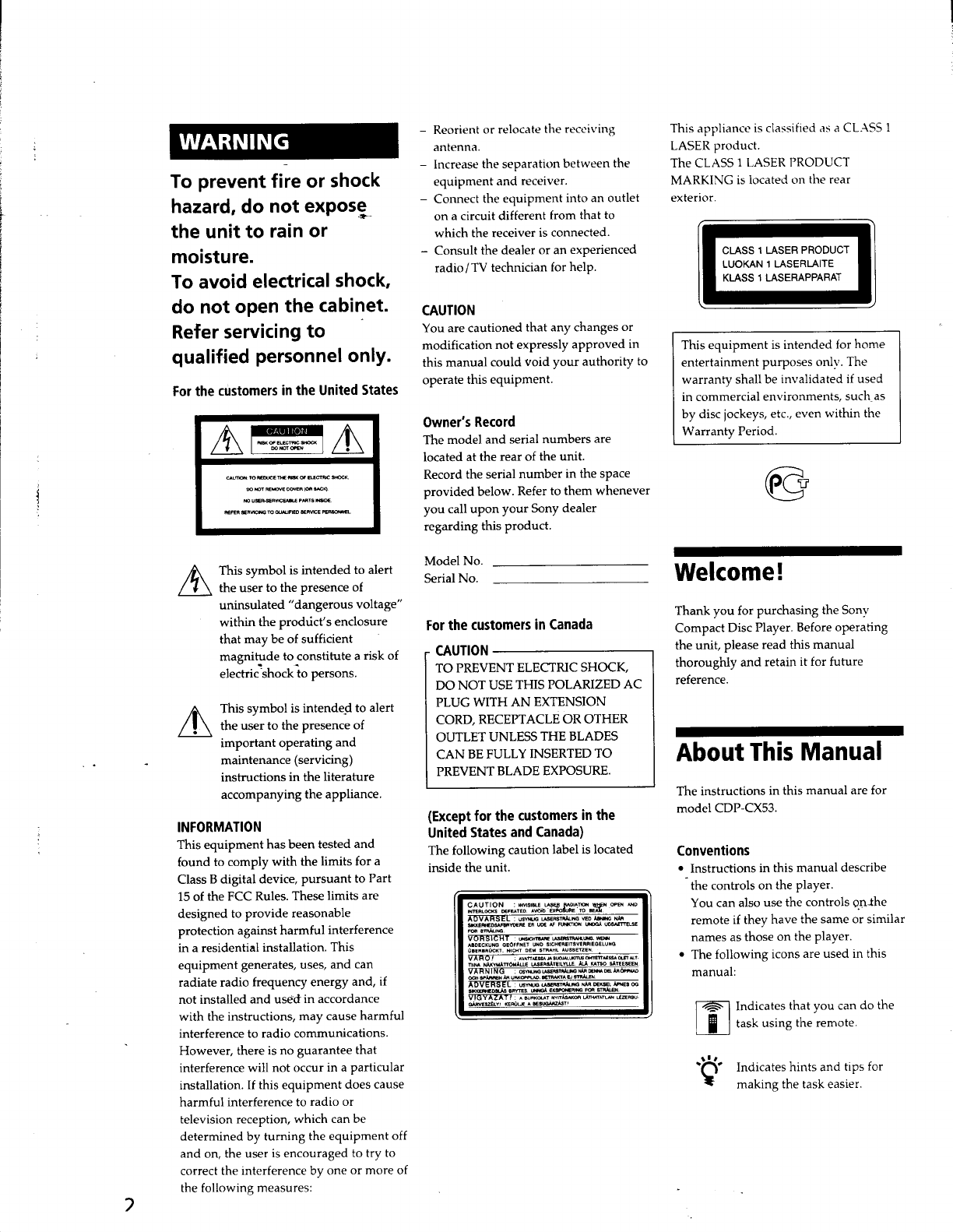 Sony CDP CX53 User Manual Operating Instructions CDPCX53