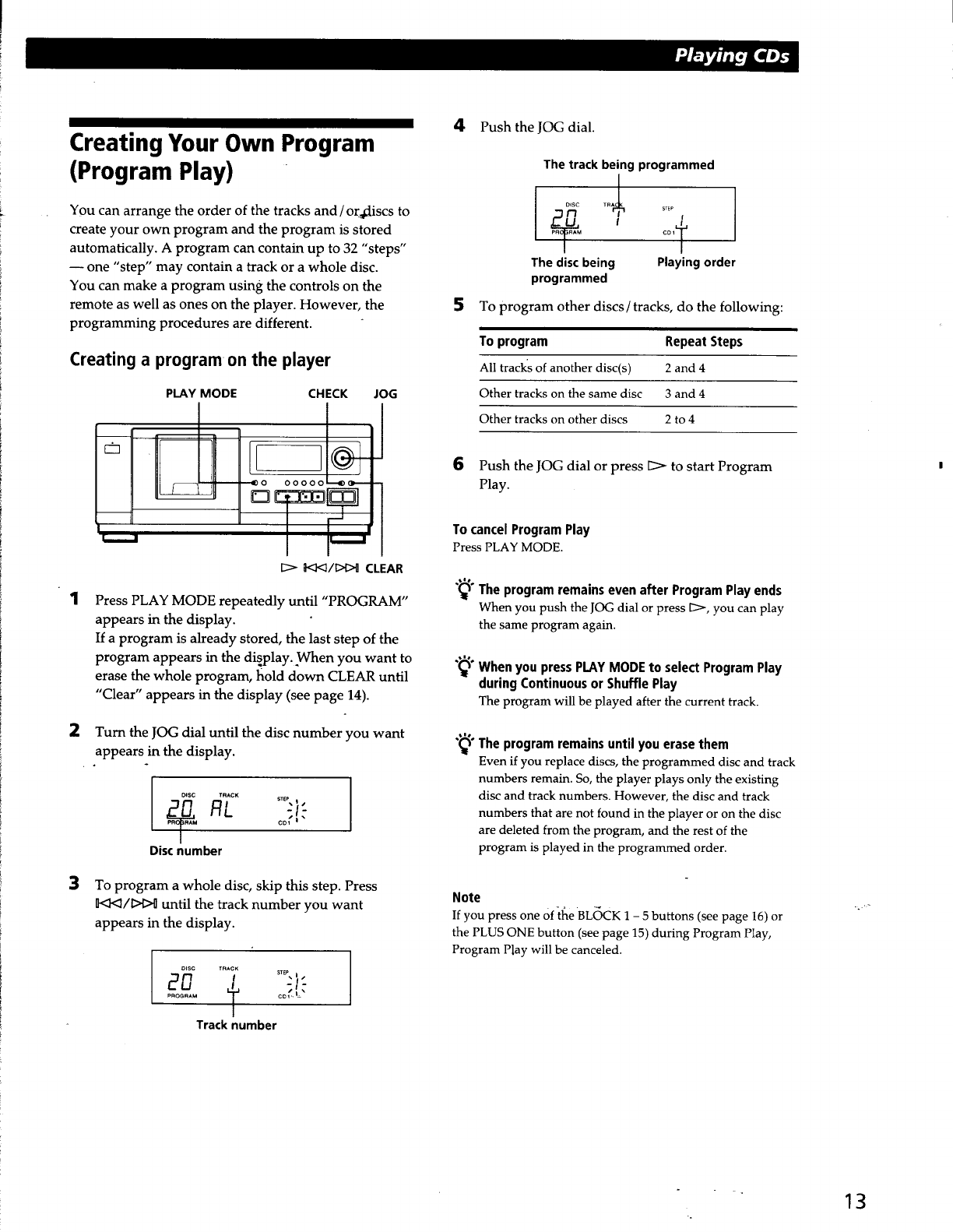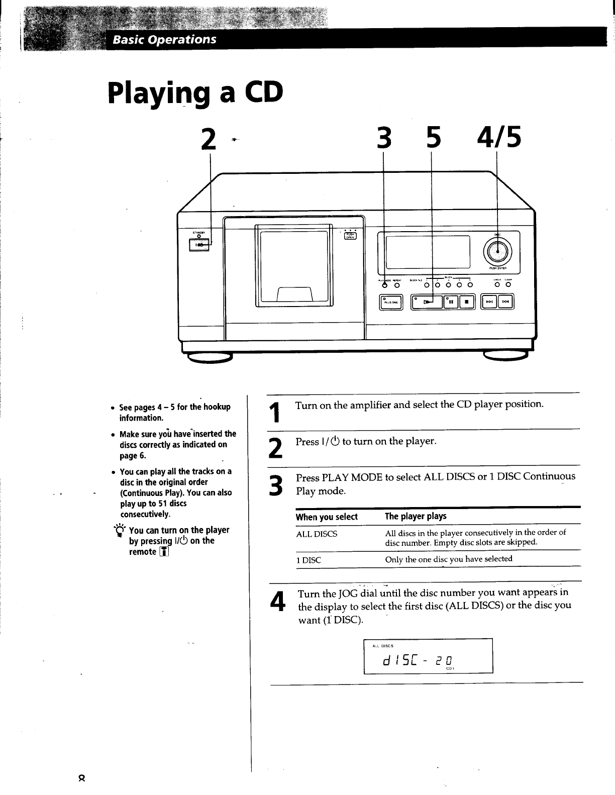 User Manual: Sony CDP-CX53 Operating Instructions