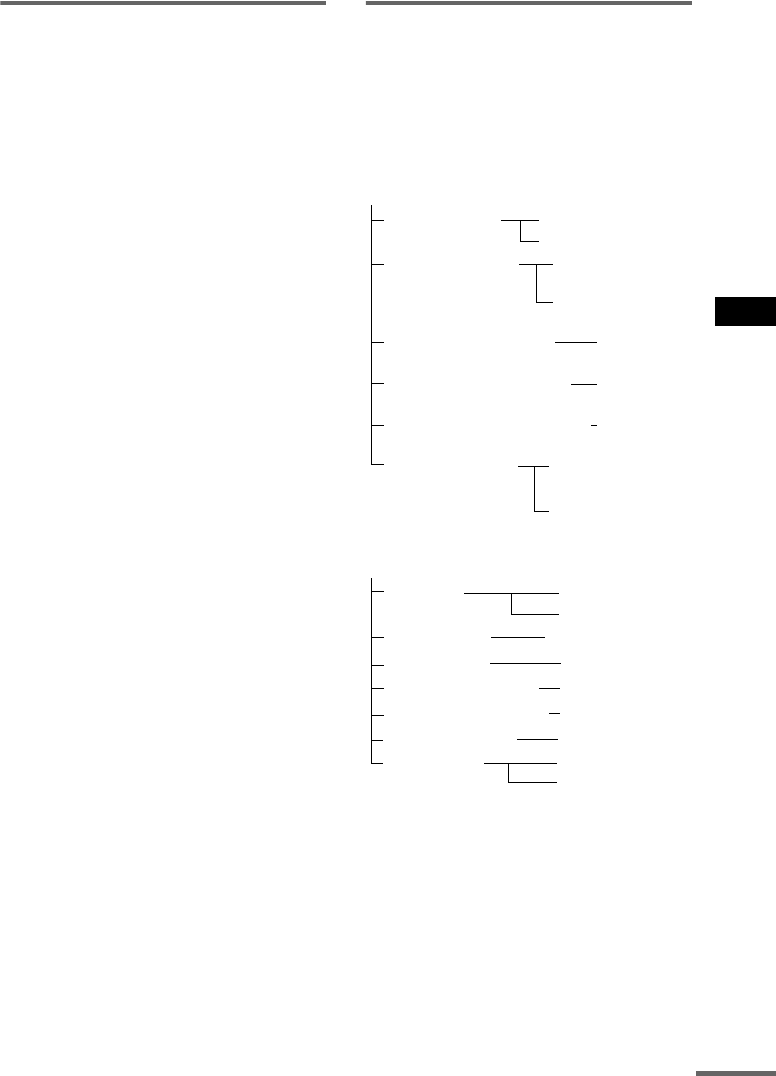 screen to set or adjust the items.