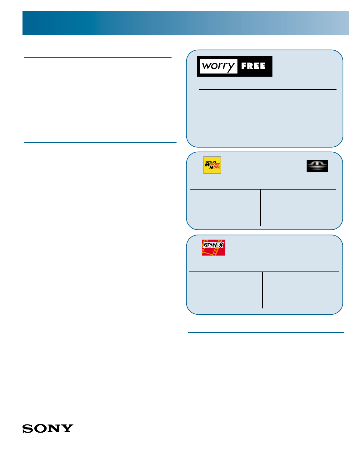 Sony, AccuPower, Advanced HAD, Handycam, i.LINK, ImageStation, InfoLithium, Memory Stick, Memory