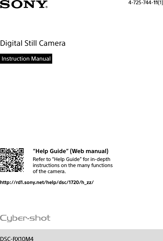 Sony DSC RX10M4 User Manual Instruction 4725744111