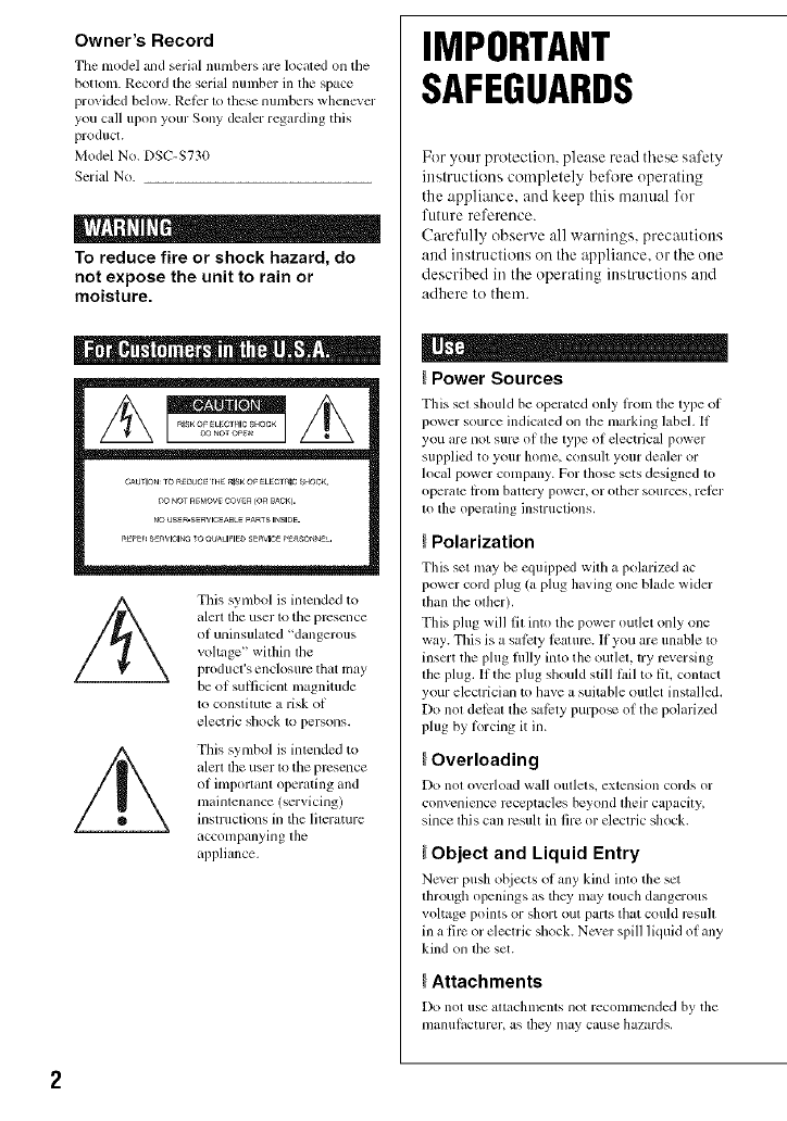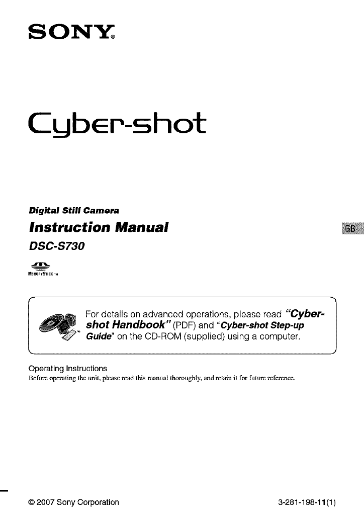 User Manual: Sony DSC-S730 DSC-S730 SONY DIGITAL CAMERA - Manuals and Guides View the owners manual for your SONY DIGITAL CAMERA #DSCS730. Home:Electronics Parts:Sony Parts:Sony DIGITAL CAMERA Manual