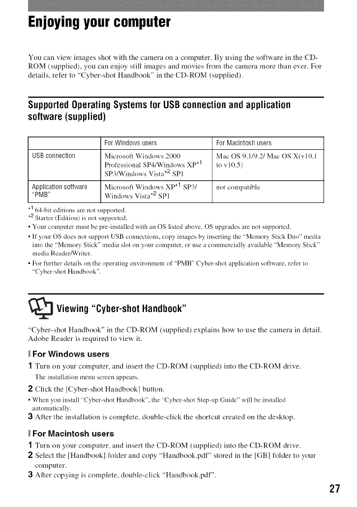 shot Handbook" (PDF) and "Cyber-shot Step-up Guide" J