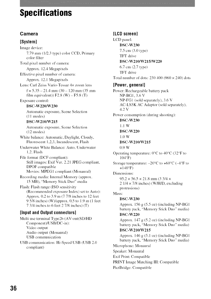 Sony DSC W210 User Manual DIGITAL CAMERA Manuals And Guides L0902566