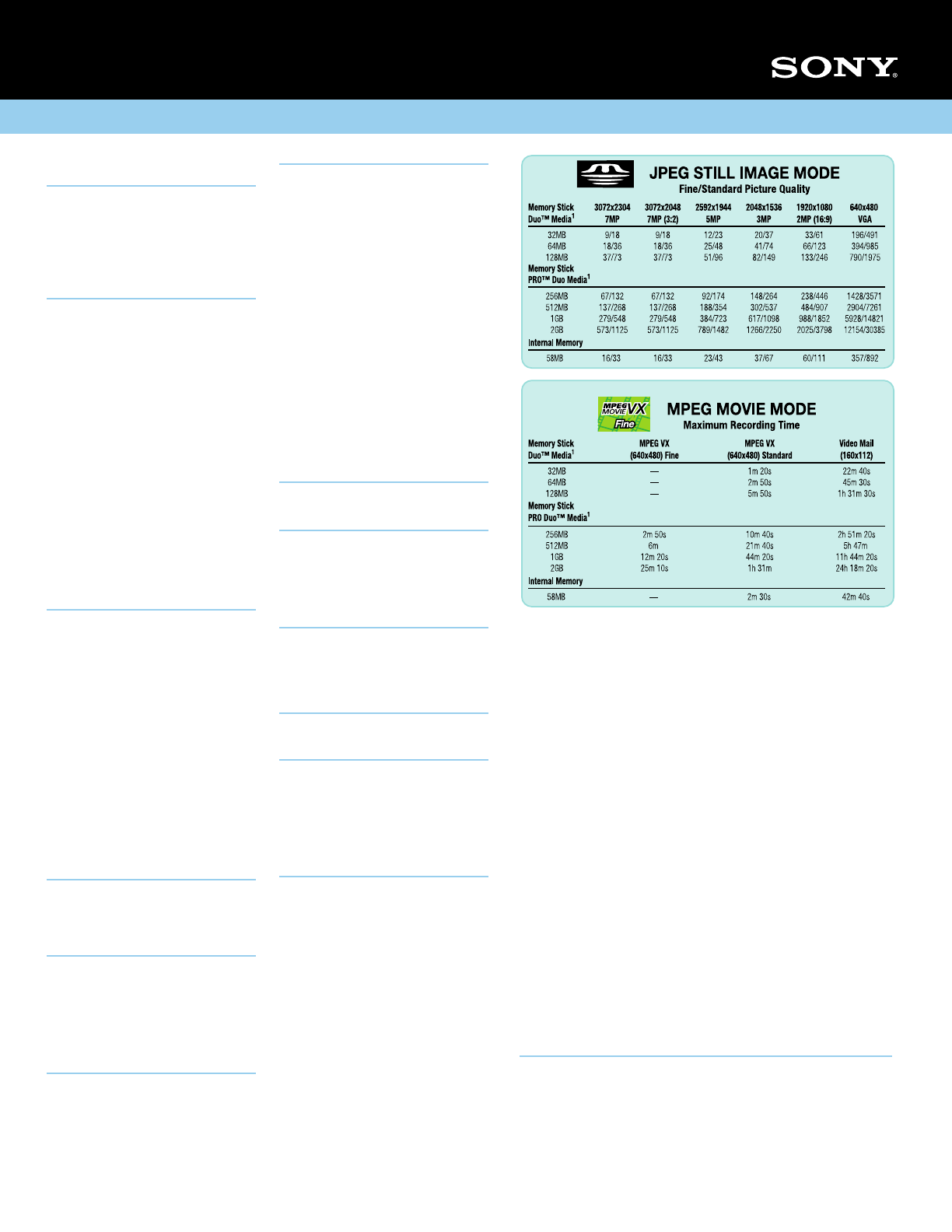 Sony DSC W70 User Manual Marketing Specifications (Silver ) DSCW70 Mksp