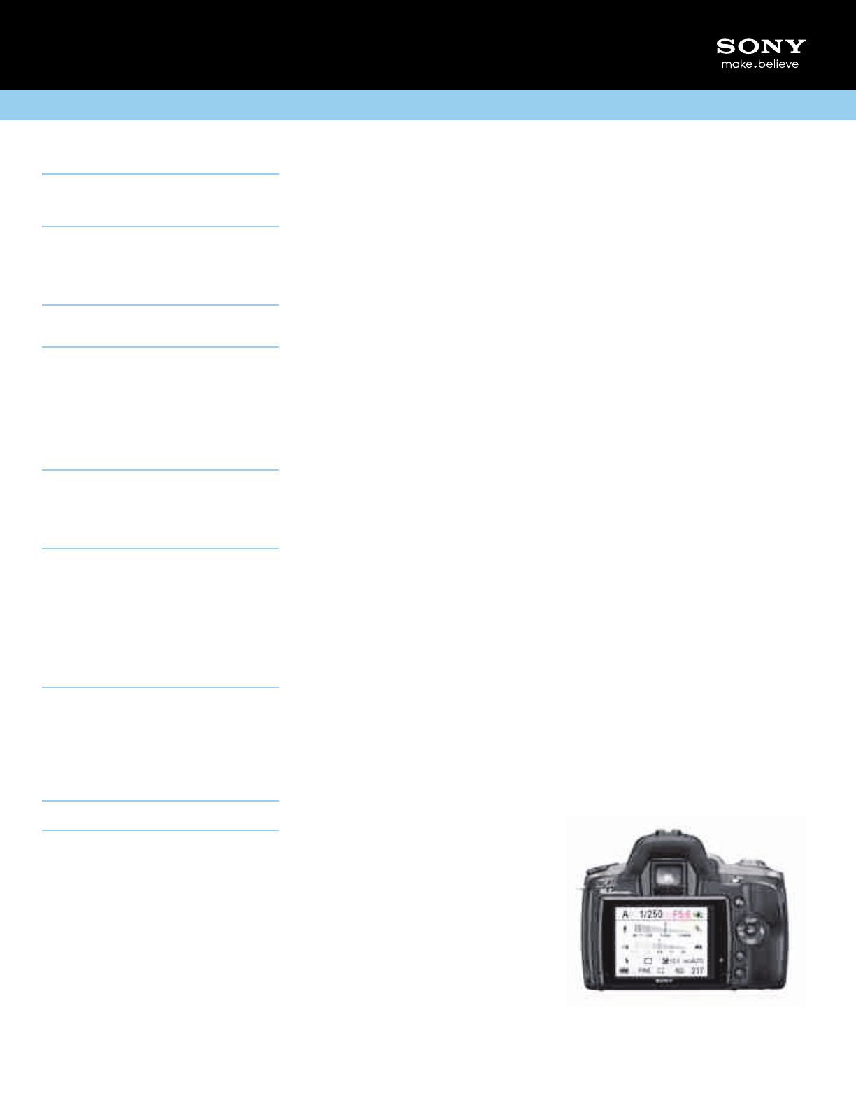 Sony DSLR A330 User Manual Marketing Specifications (DSLR A330Y Kit) DSLRA330Y Mksp