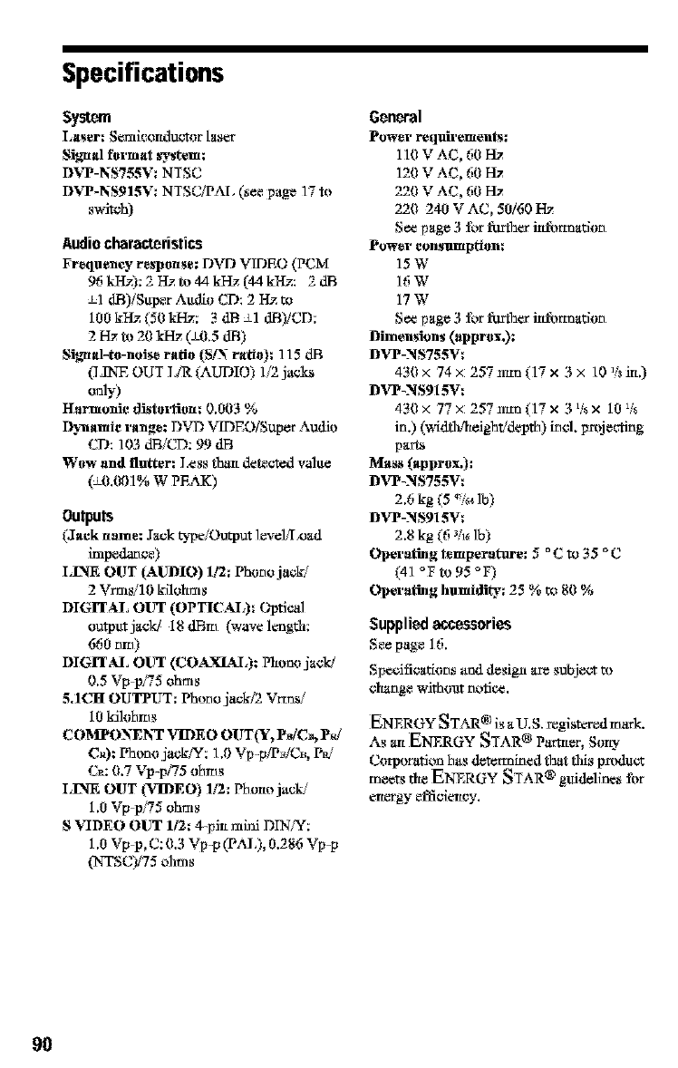 Sony DVP NS755V User Manual CD/DVD PLAYER Manuals And Guides L0307109