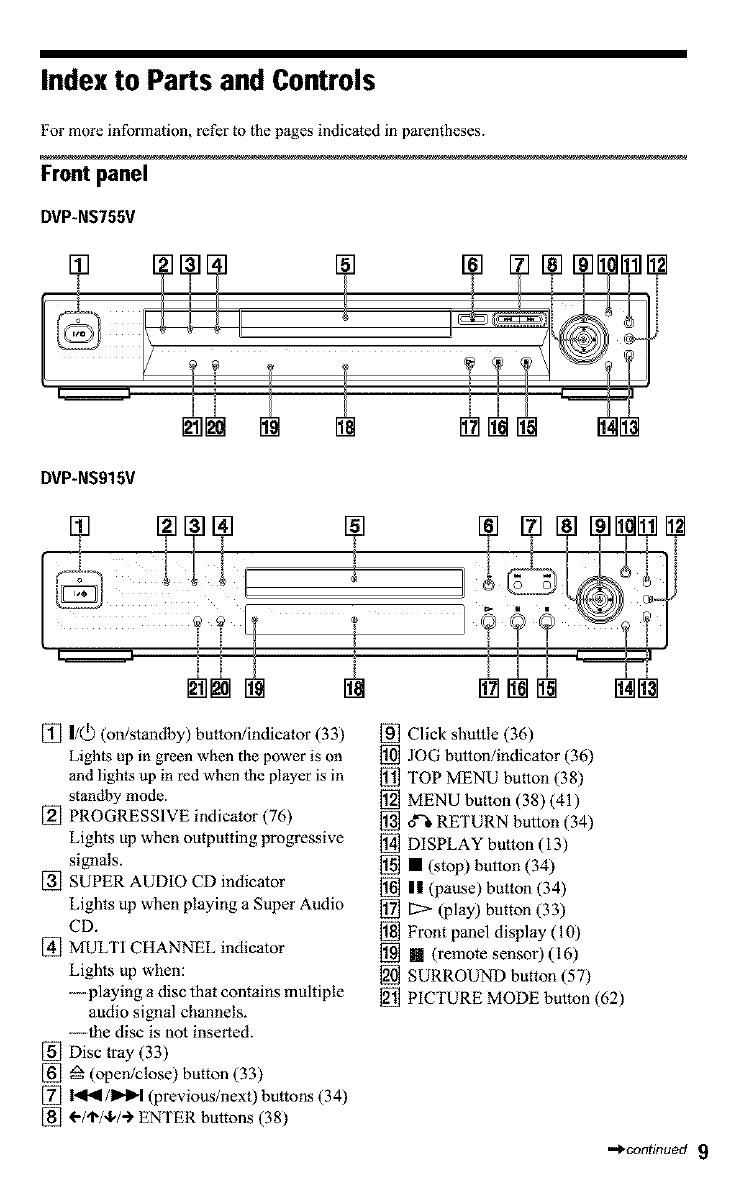 User Manual: Sony DVP-NS755V DVP-NS755V SONY CD/DVD PLAYER - Manuals and Guides View the owners manual for your SONY CD/DVD PLAYER #DVPNS755V. Home:Electronics Parts:Sony Parts:Sony CD/DVD PLAYER Manual