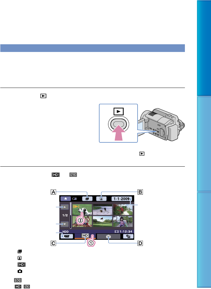 - Recherche de scène par endroit de prise de vue (Index des cartes) (HDR-XR200V)
