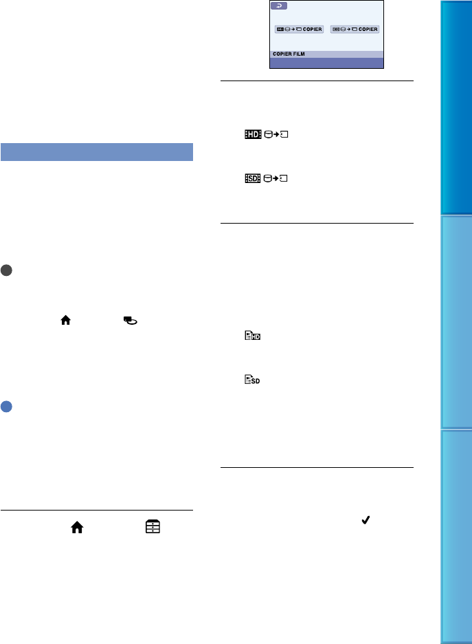 - Reproduction/copie de films et de photos à partir du disque dur intégré vers un « Memory Stick PRO Duo »