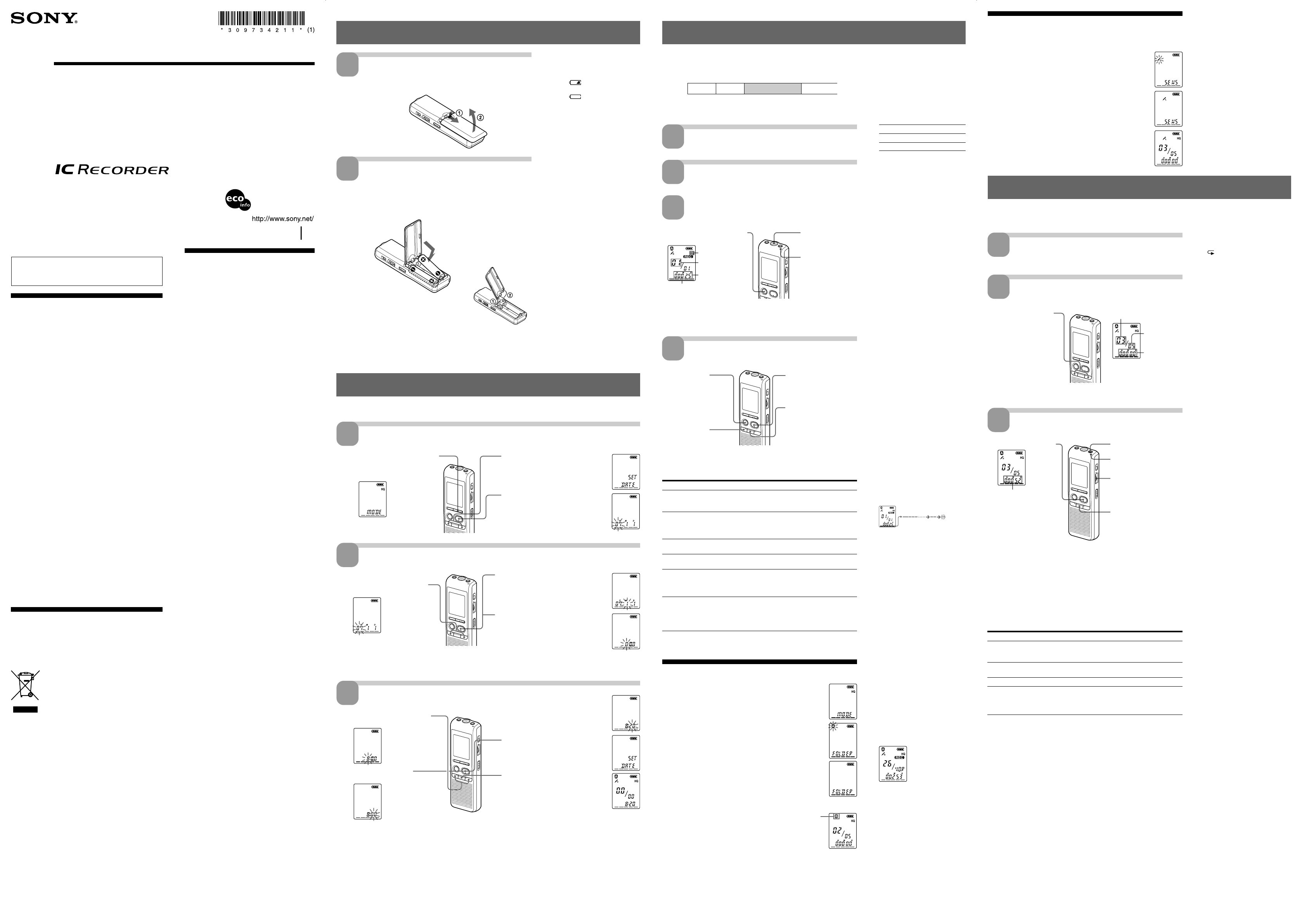User Manual: Sony ICD-B500 Operating Instructions