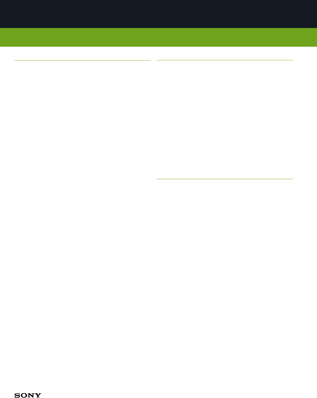 Please visit the Dealer Network for more information at www.sony.com/dn