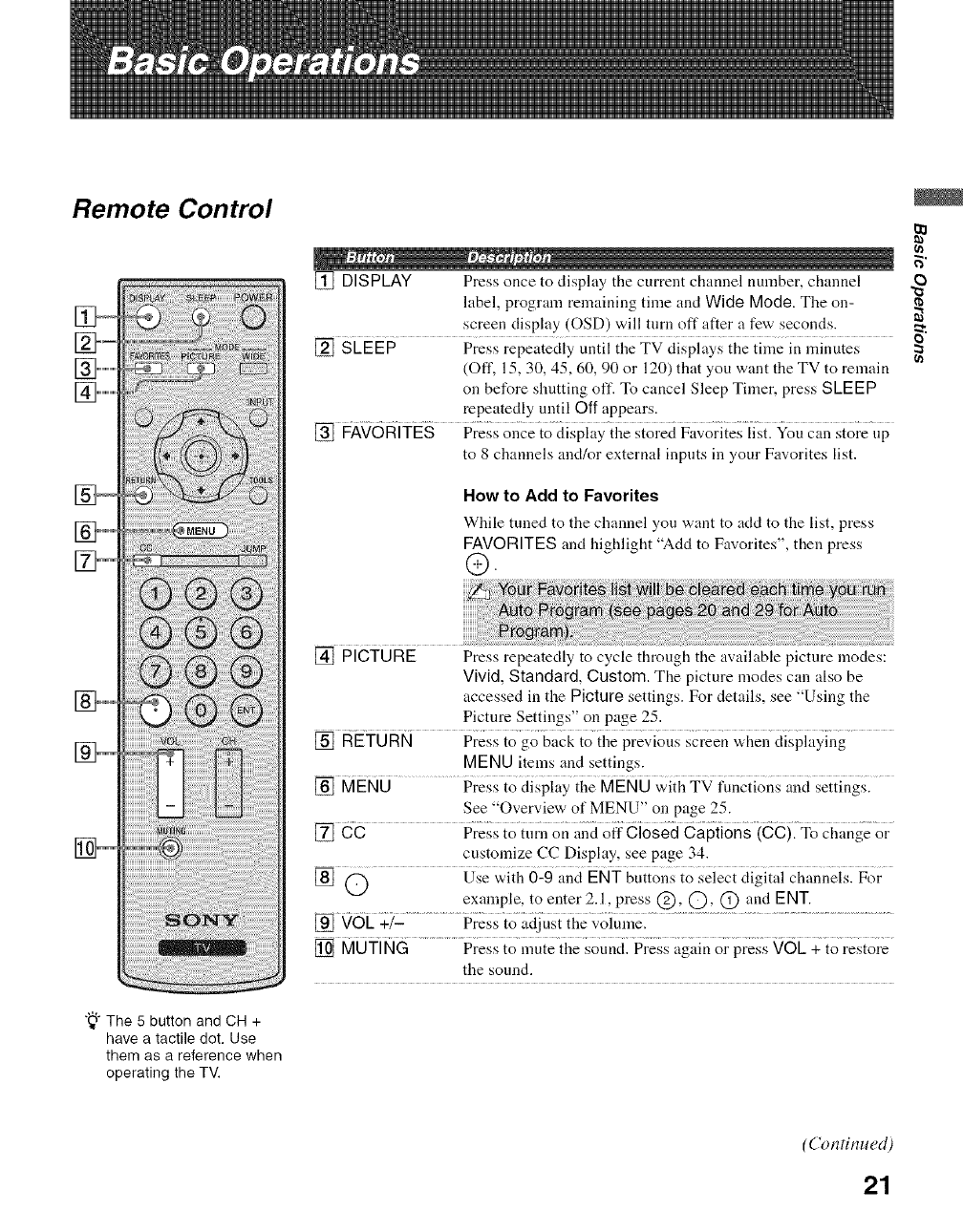 FAVORITES button 21