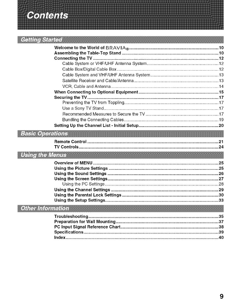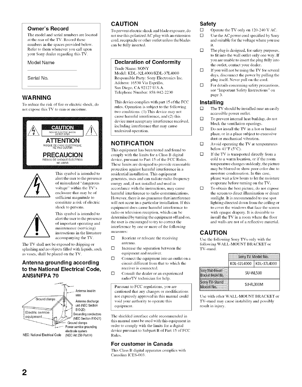 SONY LCD Television Manual L0804301 SONY LCD Television Owner's Manual, SONY LCD Television installation guides