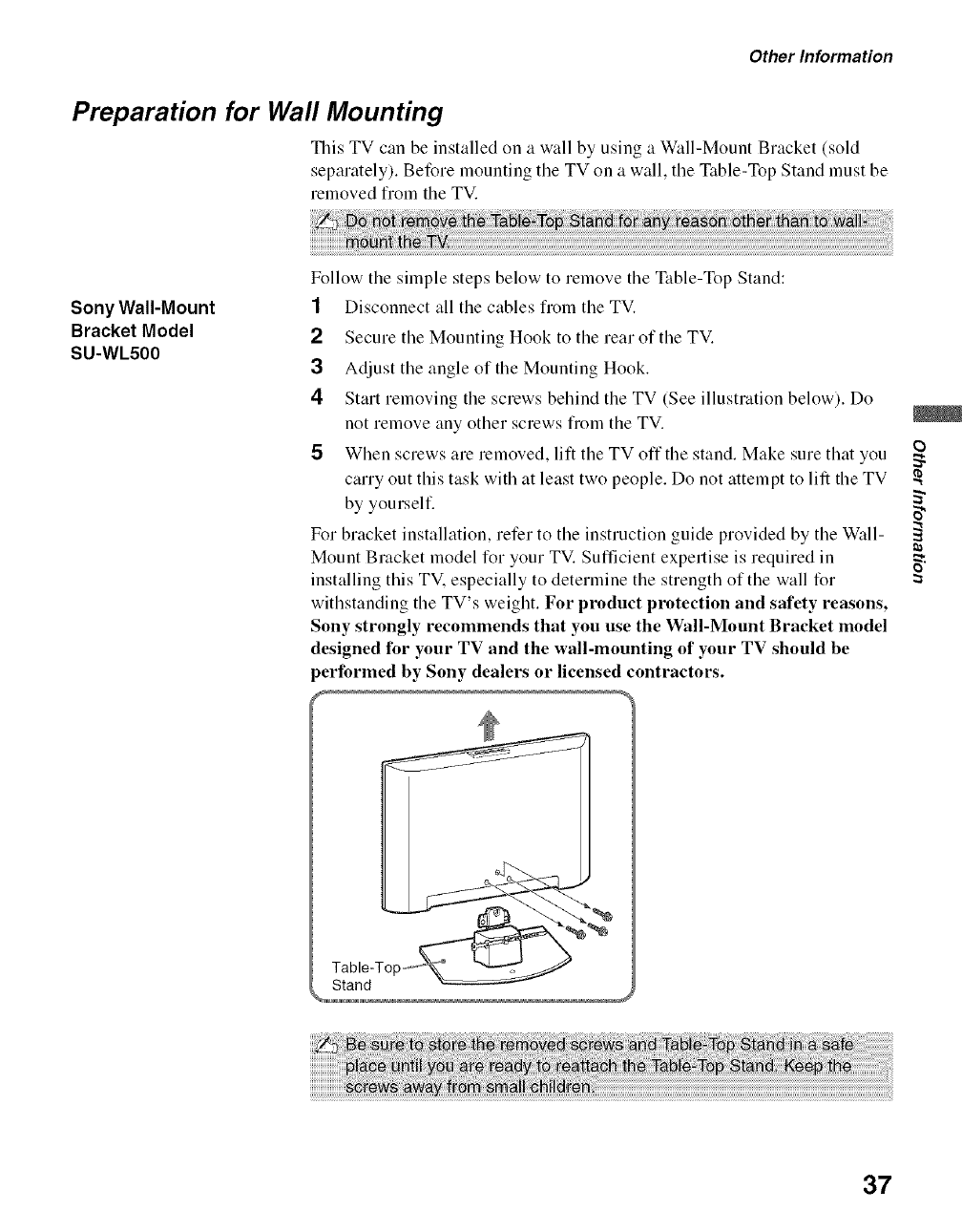Installing the TV on a wall 37