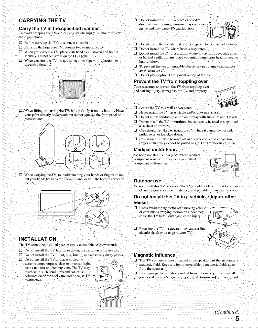 as vases, shall be placed on the TV.
