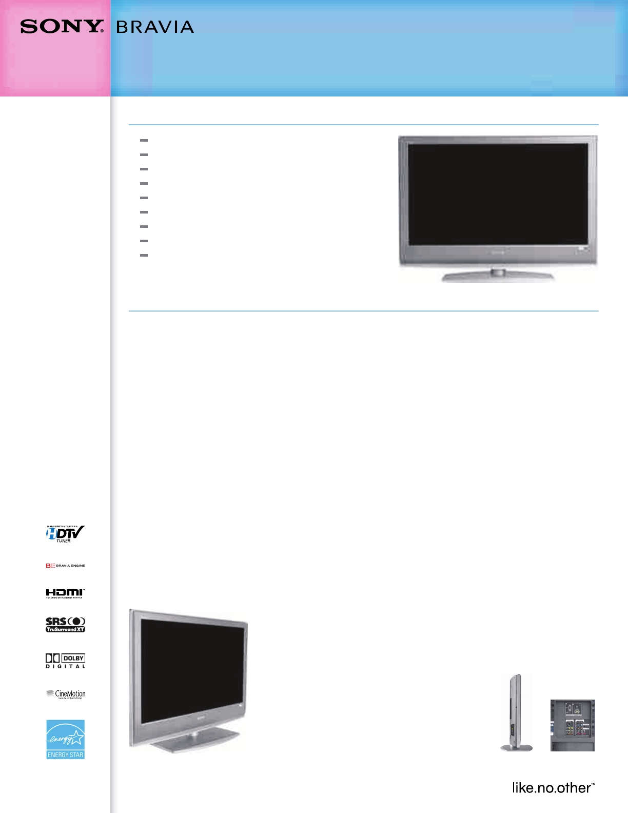 Sony, BRAVIA, BRAVIA Engine, and CineMotion are trademarks of Sony. SRS